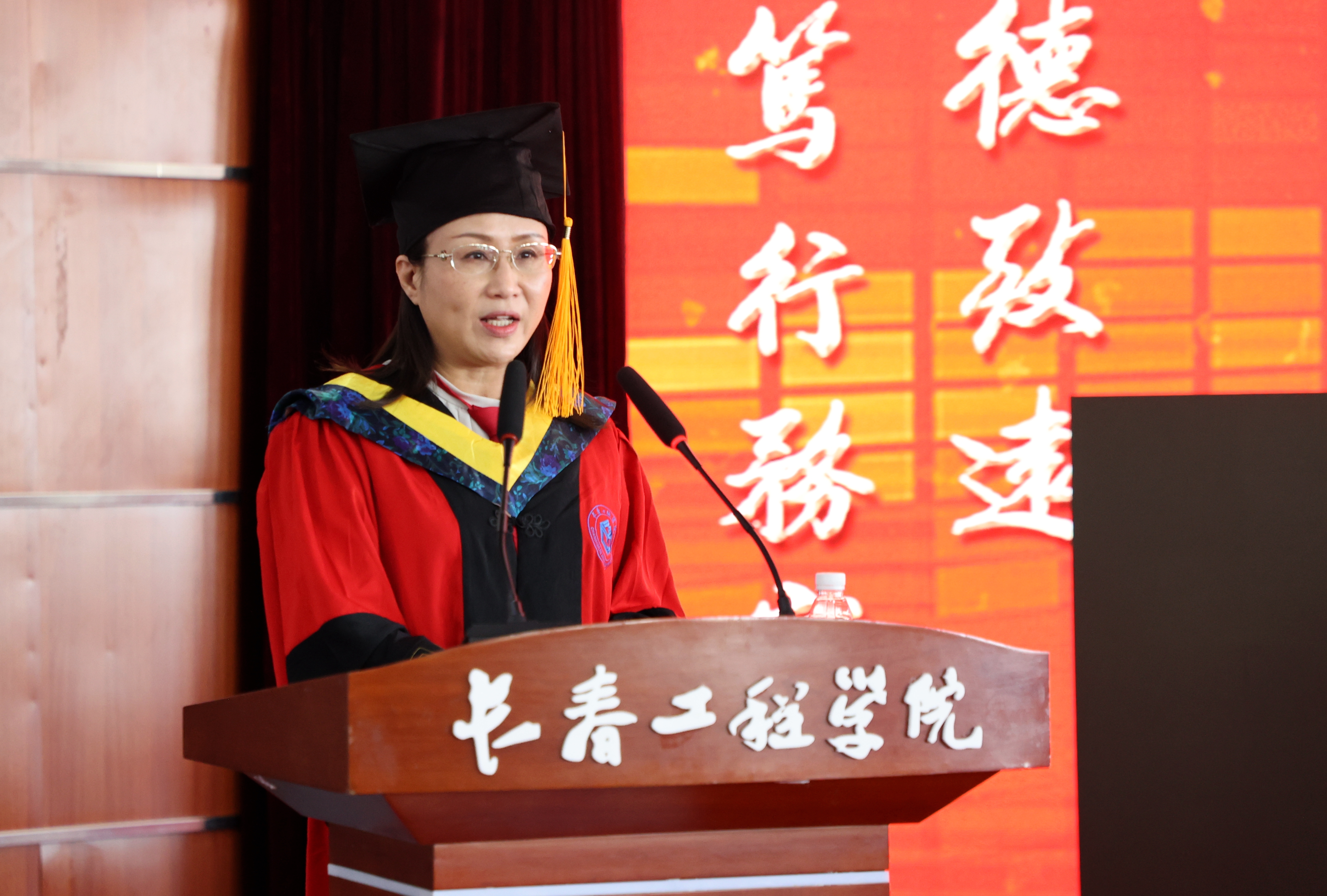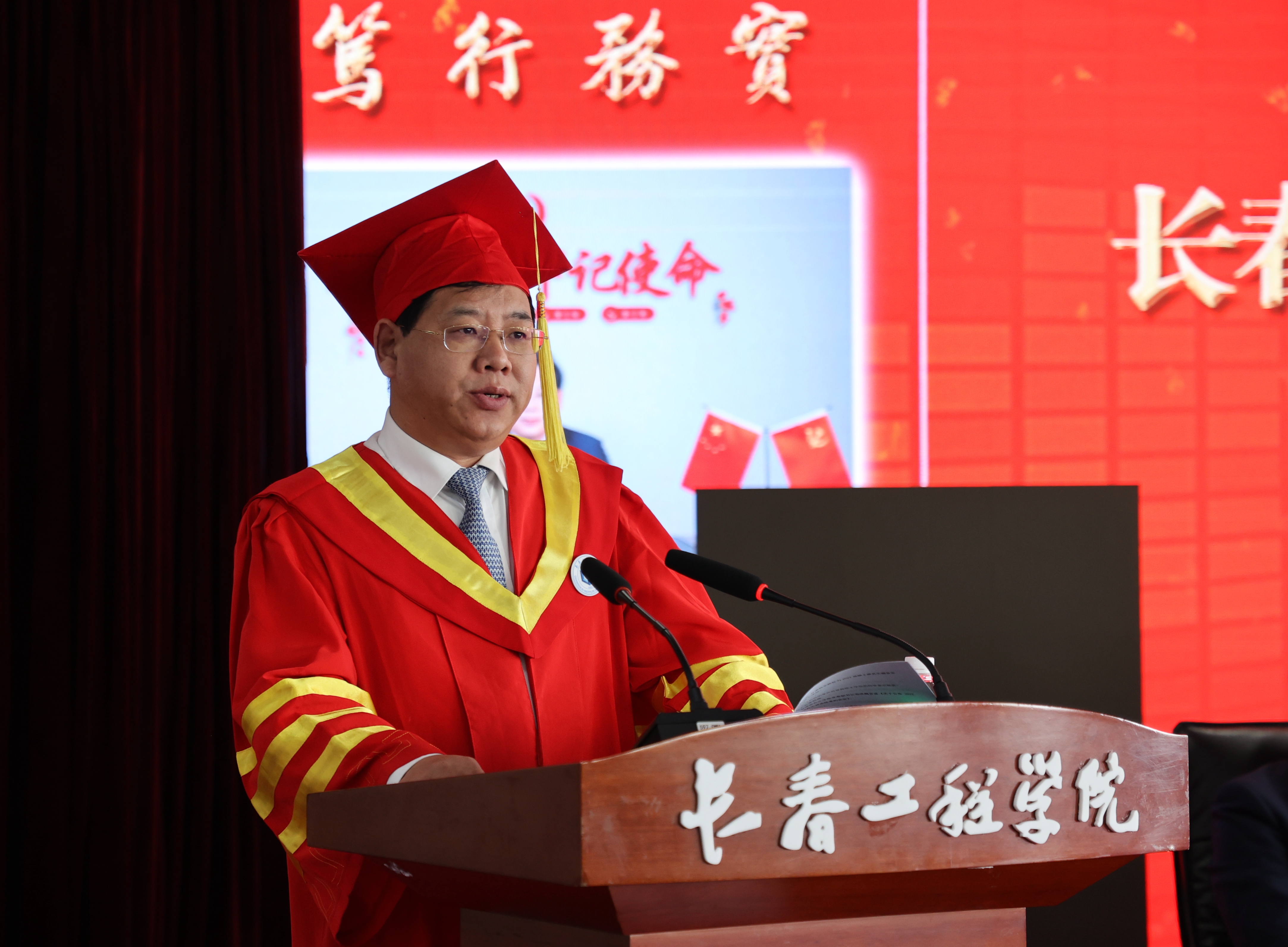 他指出,近几年,在学校党委的领导下,学校各项事业实现了跨越式的发展。学校今天已经成为省属重点建设应用型的A类高校,成为应急管理部和吉林省人民政府共建的高校。学校有11个专业通过了工程教育认证。我们重点建设的6个学科,成为吉林省客观评价排名前30%的学科,而且全部进入校友会排行榜的前50%,我们的科研水平综合实力在不断向前跃升。希望同学们能够自信的走出校门、走向社会,无论你们走到哪里,母校都是你们坚强的后盾。