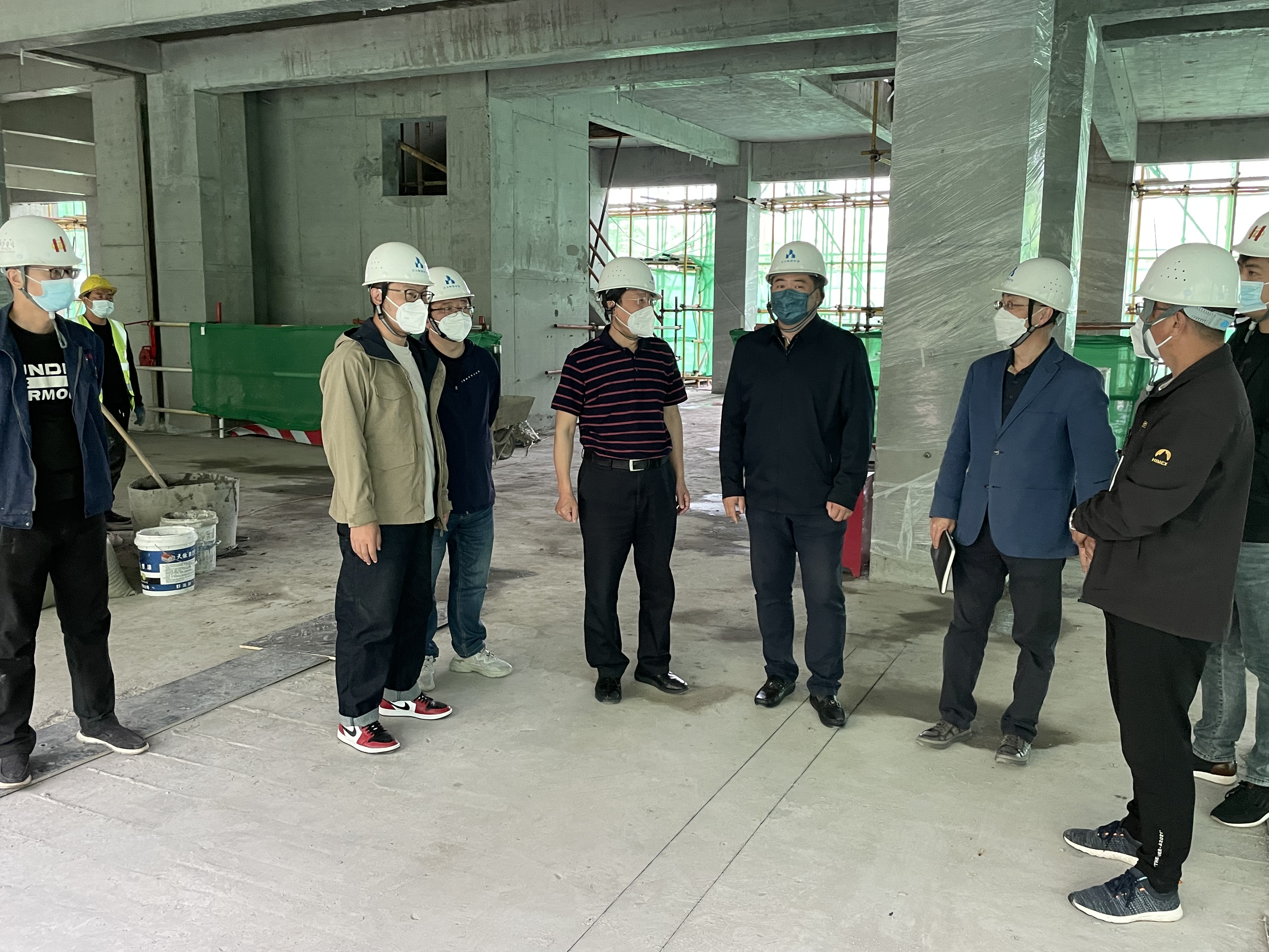 目前,该项目建设已完成主体三层施工。韩威副校长一行听取全过程咨询单位项目负责人和施工单位项目负责人对工程进展情况的汇报,并进行深入的交流,详细了解了项目现场进度安排、工程质量和安全文明施工、防疫工作管理等各方面的情况。