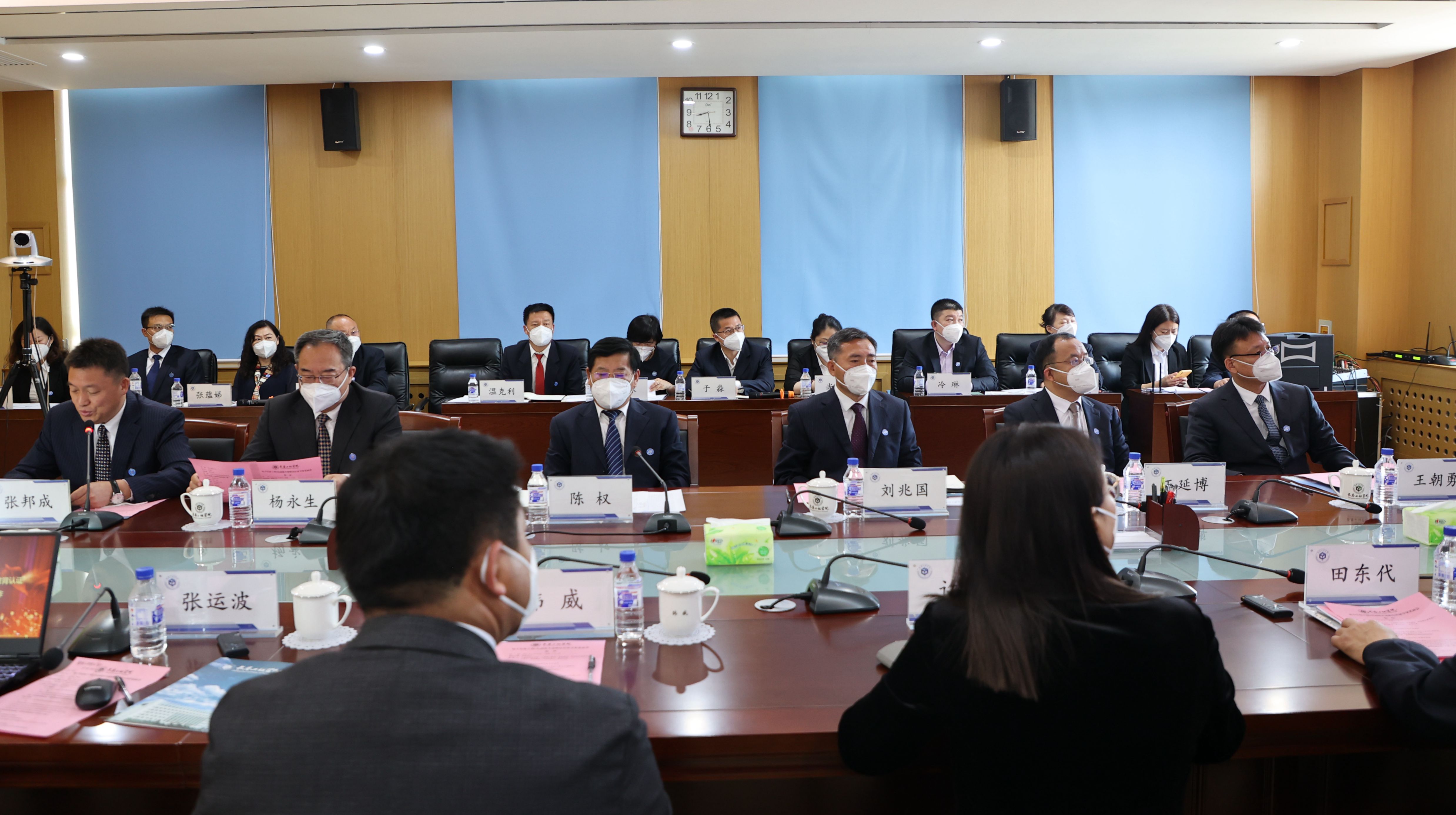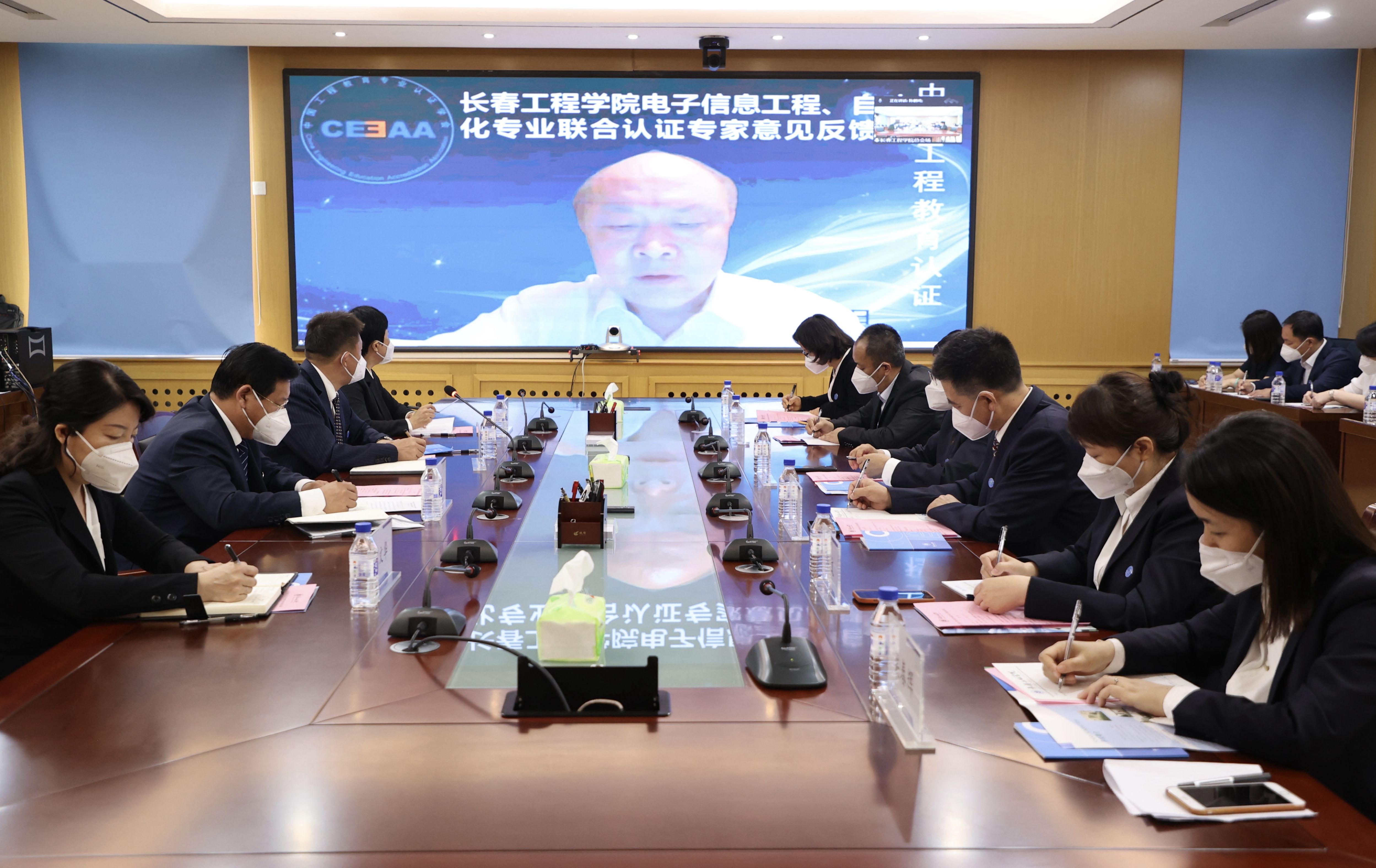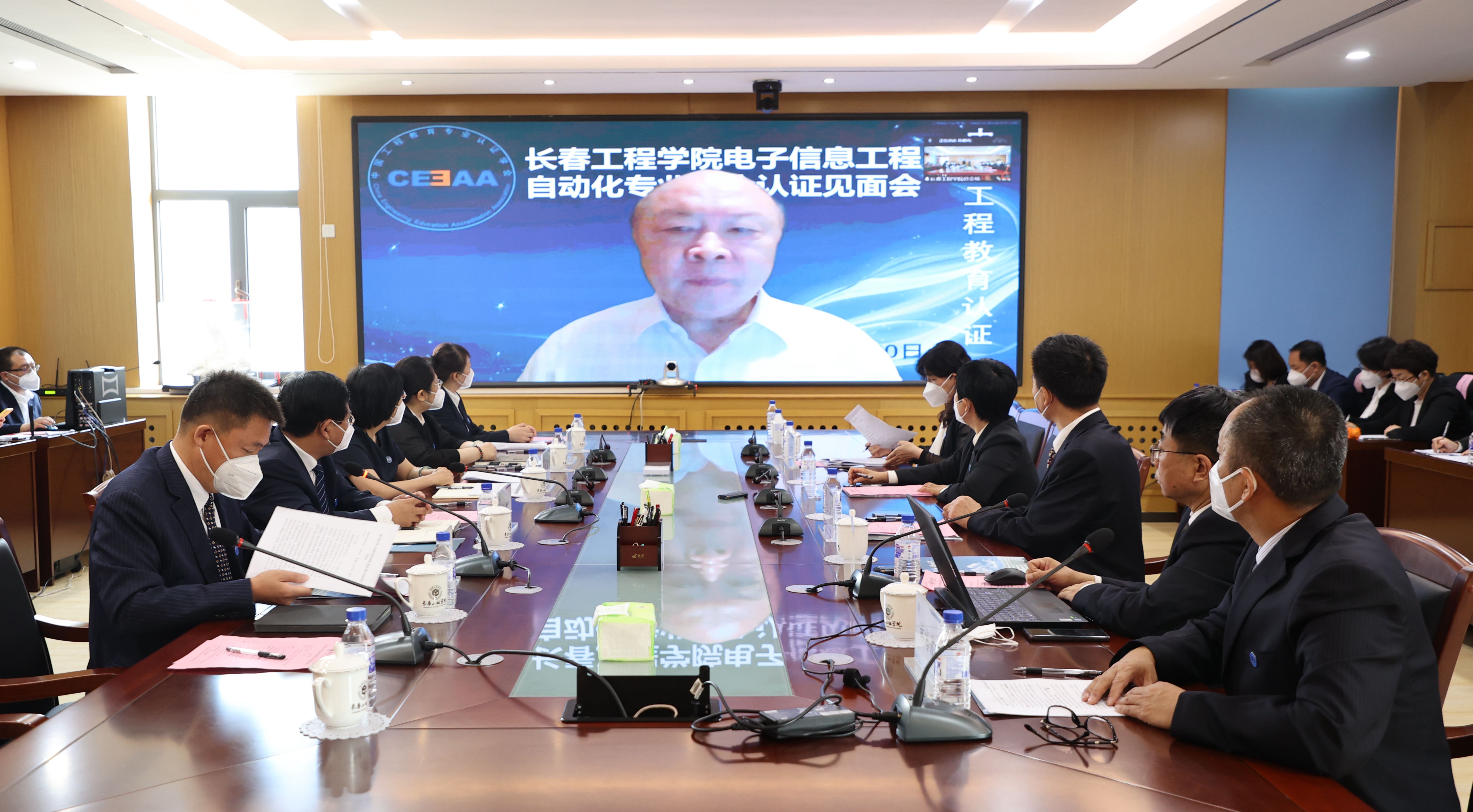 6月20日上午,专业联合认证线上专家见面会在学校办公楼343、241会议室召开。校长陈权,党委副书记刘兆国、杨永生,纪委书记王延博,副校长王朝勇、张邦成、许骏、韩威出席会议。电气与信息工程学院领导班子成员,电子信息工程专业教师、自动化专业教师,相关教学单位领导和教师代表,以及学校有关职能部门负责人参加了会议。吉林省教育厅高等教育处处长宋辉通过网络视频的方式参加了见面会。见面会第一阶段由副校长张邦成主持。
