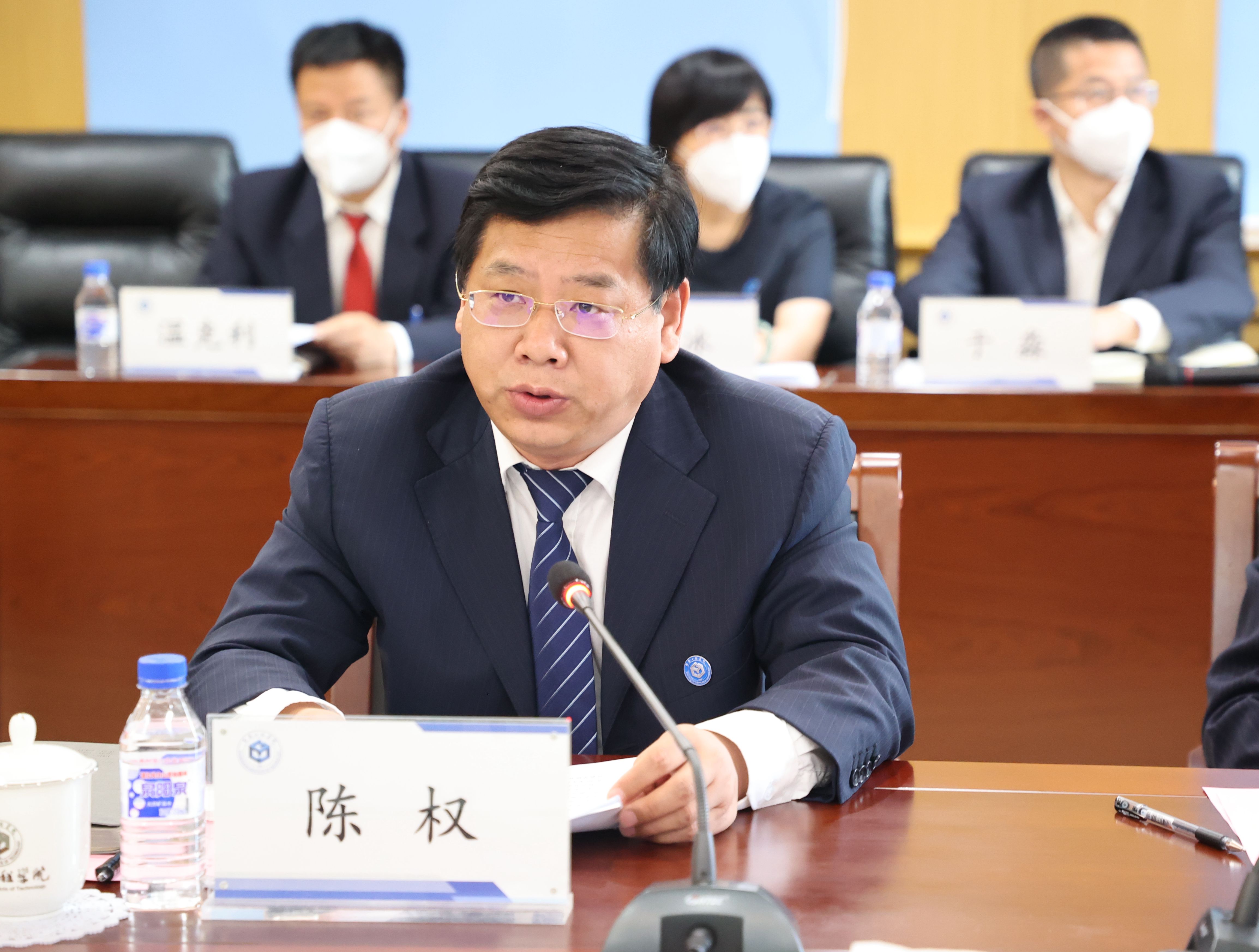 陈权校长代表学校对专家组的考查指导表示热烈欢迎和衷心感谢,对省教育厅高等教育处宋辉处长一直以来对学校专业认证工作的大力支持表示由衷谢意。他指出,学校始终把专业建设作为教育教学的重中之重,特别是近年来,紧紧遵循“学生中心、产出导向和持续改进”理念,通过以评促建、以评促改、以评促强,极力强化专业认证工作,以此促进人才培养质量的不断提升。他表示,学校衷心期待得到各位专家对两个专业建设的宝贵意见和建议,学校一定全力以赴,积极配合专家组工作,以严肃认真的态度对待认证、以科学务实的工作接受考查。