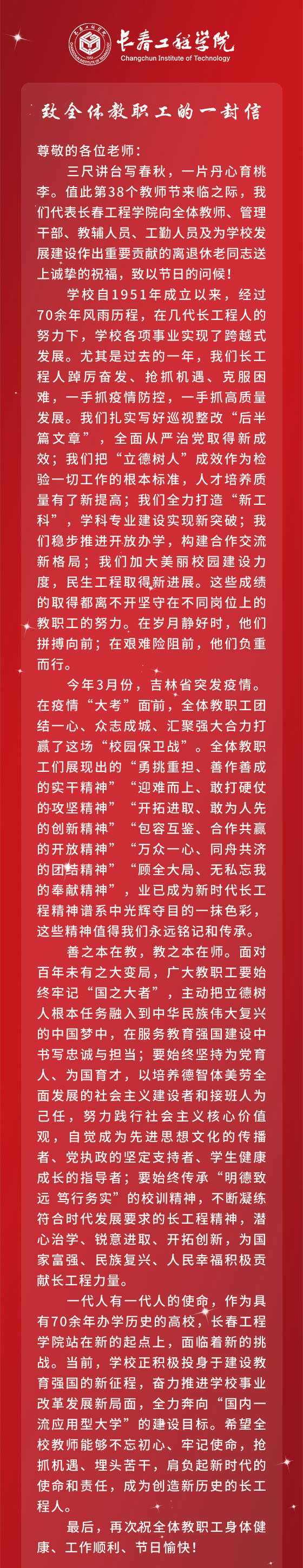 致全体教职工的一封信