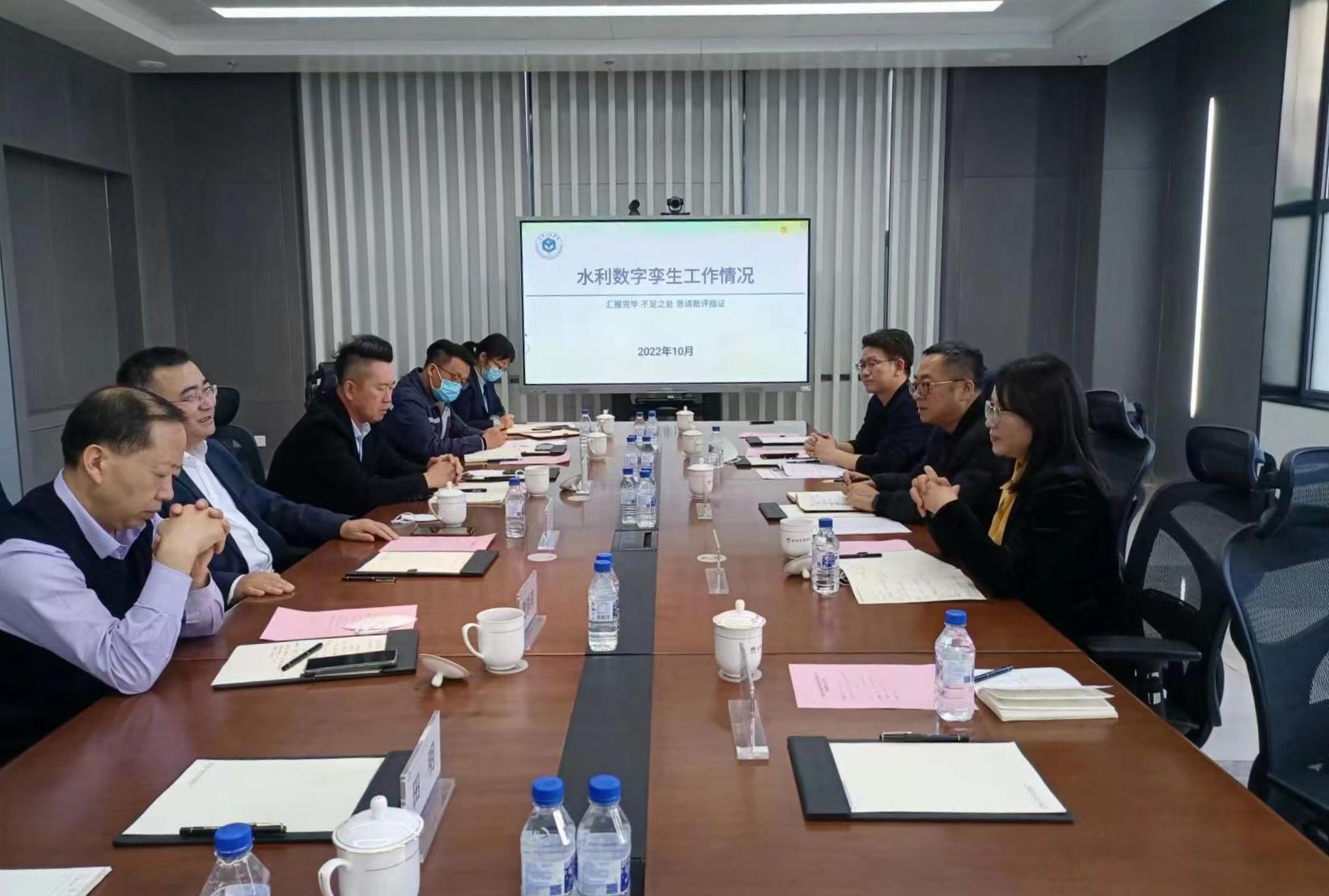 学校发展规划处处长陈智勇就前期的研究工作进行了汇报。公司副总经理王世军、贾洪玮分别介绍了中部城市引松供水工程的基本情况和集团的队伍建设、文化建设等相关情况。