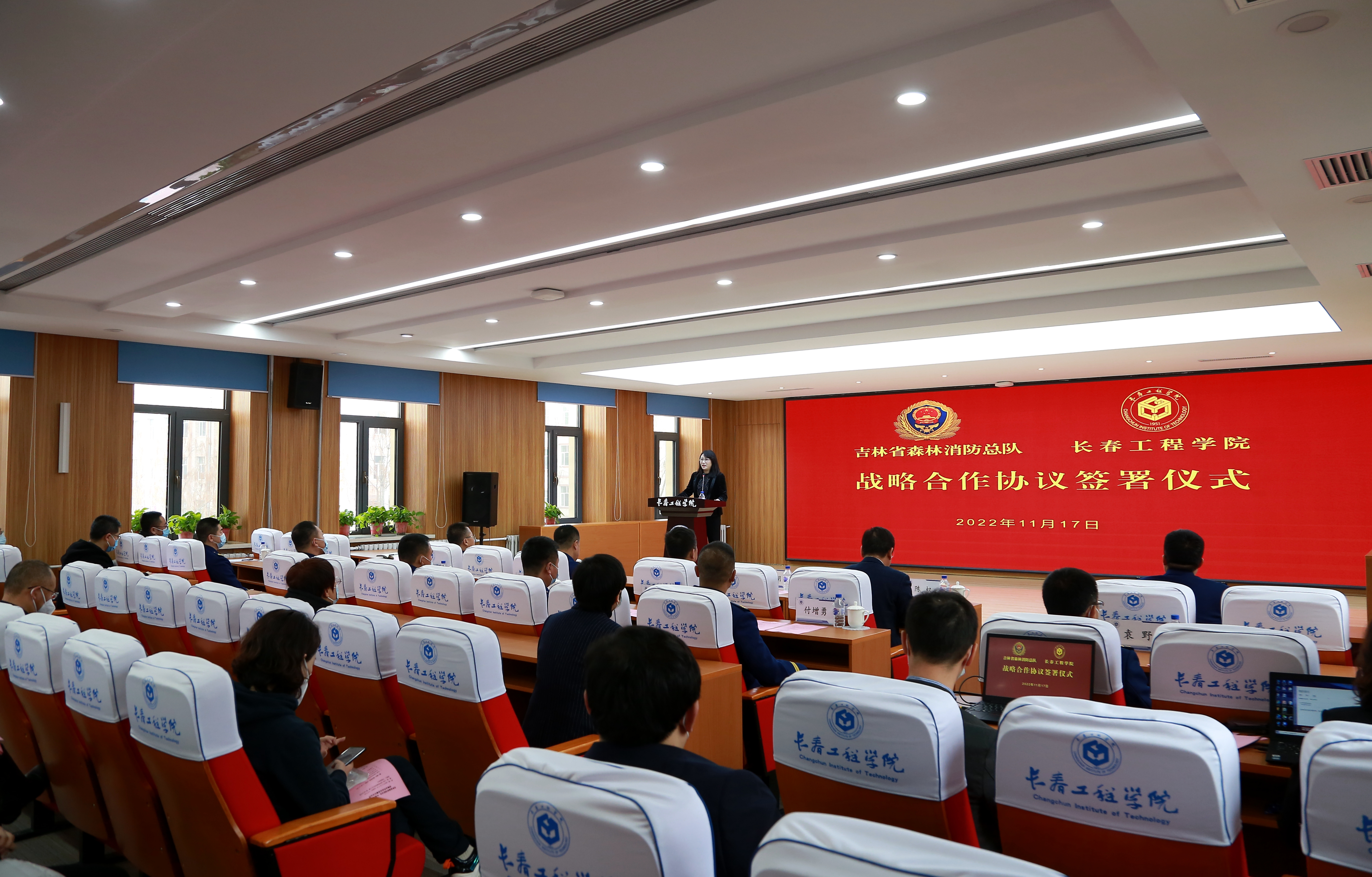 11月17日上午,吉林省森林消防总队、长春工程学院战略合作协议签署仪式在我校第一报告厅举行。吉林省森林消防总队总队长刘根善、政治委员任立新、政治部主任赵西州,长春工程学院校长陈权、副校长许骏出席仪式。