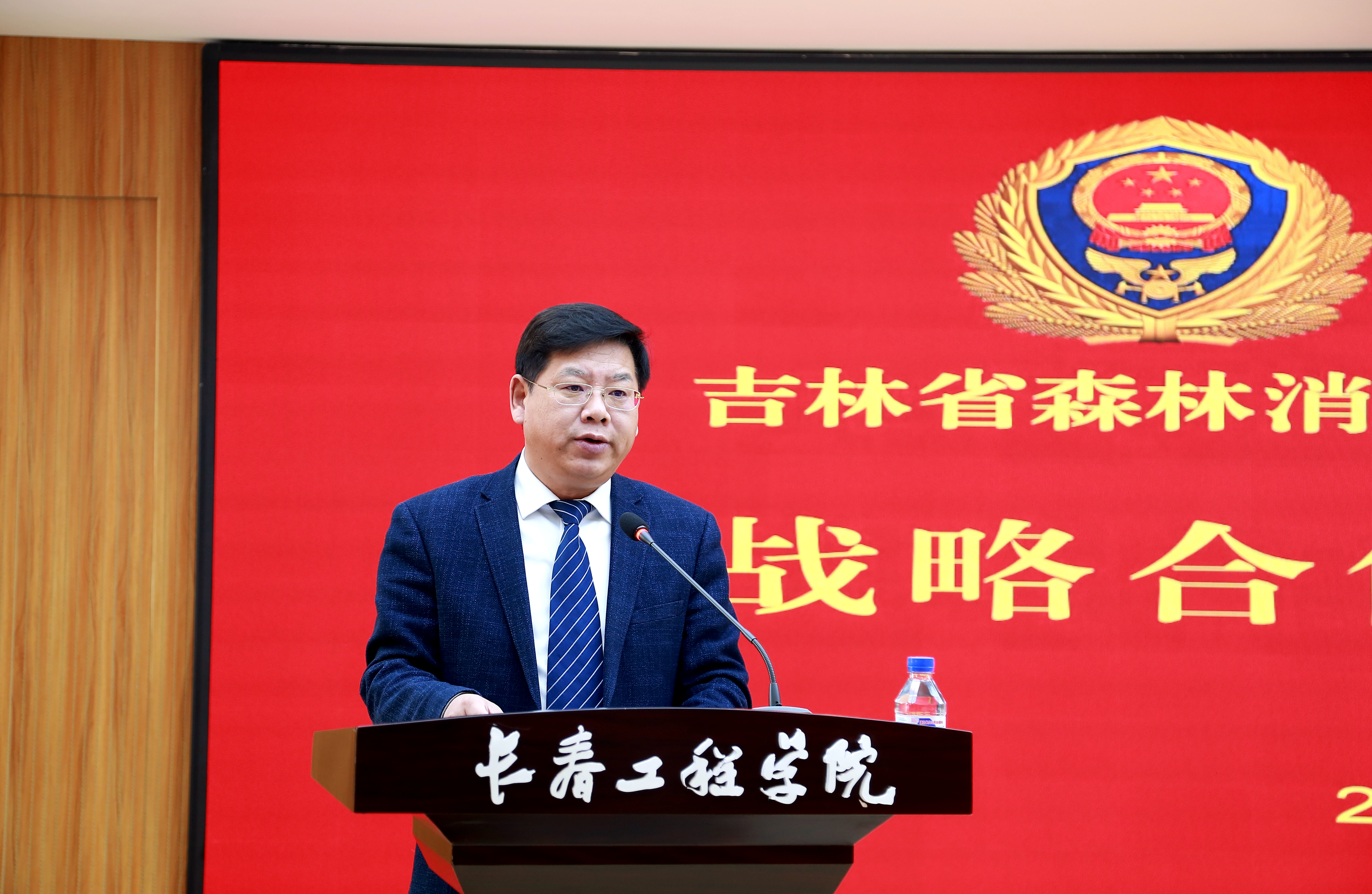 陈权校长在仪式上致辞,他指出,双方建立长期、深入、全面的战略合作关系,是贯彻落实习近平总书记授旗训词精神的务实之举,也是开拓吉林省森林消防救援事业新局面的责任担当。学校将充分发挥高校人才资源、科研资源、教育资源、社会资源优势,与吉林省森林消防总队开展全方位深入合作,双方携手共创事业发展。