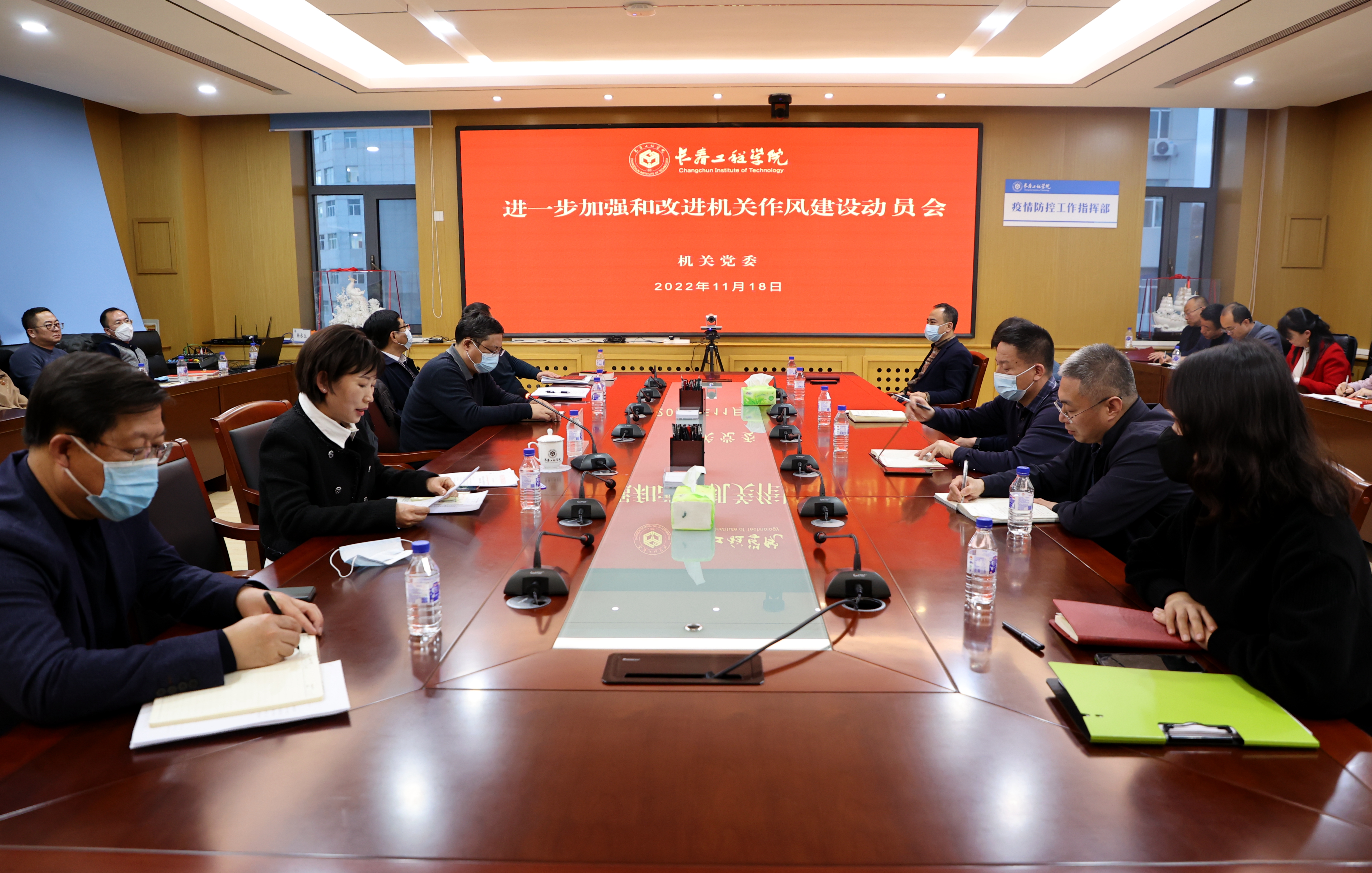 会议指出,加强机关作风建设是深入贯彻落实党的二十大精神,践行习近平新时代中国特色社会主义思想,做到“两个维护”的必然要求。机关各部门要以加强机关党建标准化规范化建设为引领,以建章立制为具体抓手,推动机关作风建设走向制度化、规范化和科学化。通过创建“五型”机关、对照改进重点问题、落实具体制度要求,进一步改进机关作风建设,解决精神懈怠、担当不足、效率低下、纪律不严、服务师生不到位、制度机制不健全、监督执行不力等问题。