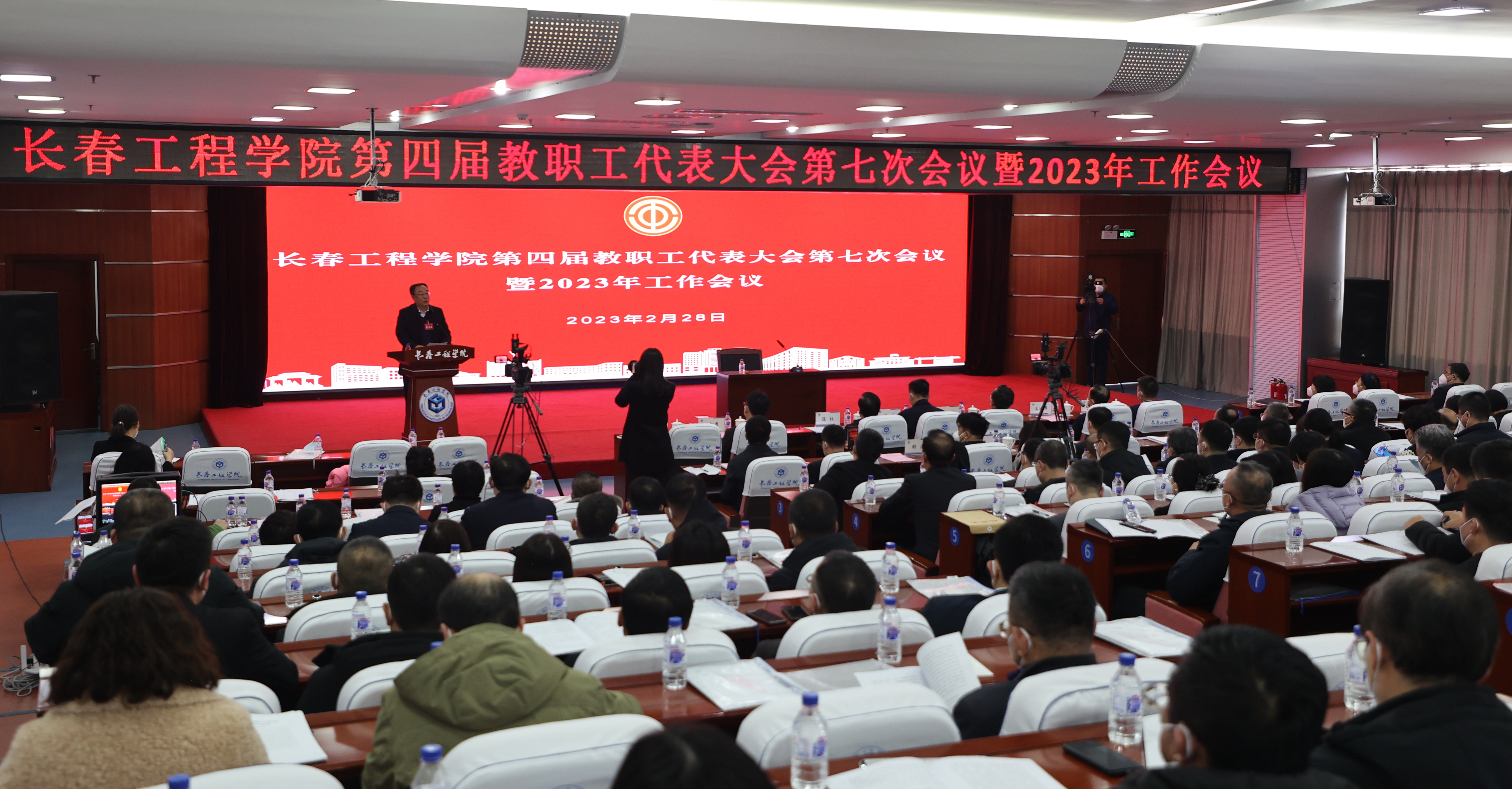 在《团结就是力量》的歌声中,长春工程学院第四届教职工代表大会第七次会议暨2023年工作会议胜利闭幕。