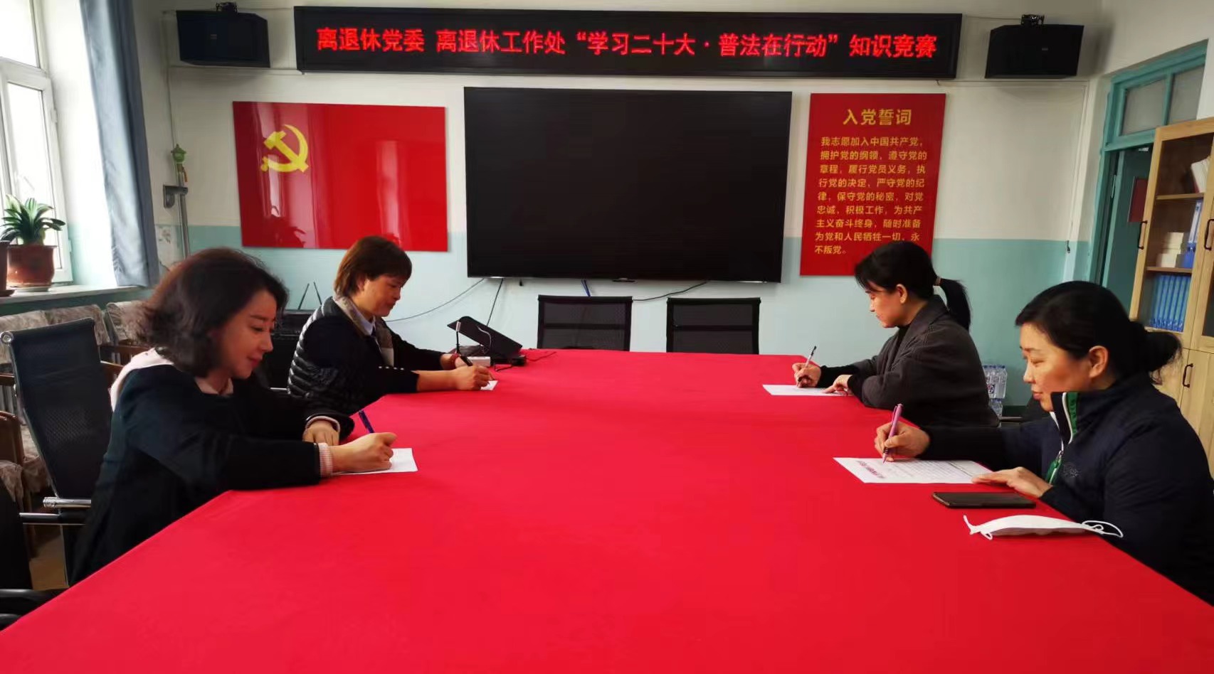 离退休党委、离退休工作处组织开展了“学习二十大,普法在行动”知识竞赛活动,采用线上线下相结合的方式,以闭卷形式开展,内容涵盖党的二十大精神、新修订的《中华人民共和国妇女权益保障法》《女职工劳动保护特别规定》《中国妇女发展纲要(2021-2030年)》等方面知识,试题涉及面广,内容丰富,拓展了广大离退休职工的知识面,提高了个人思想觉悟。
