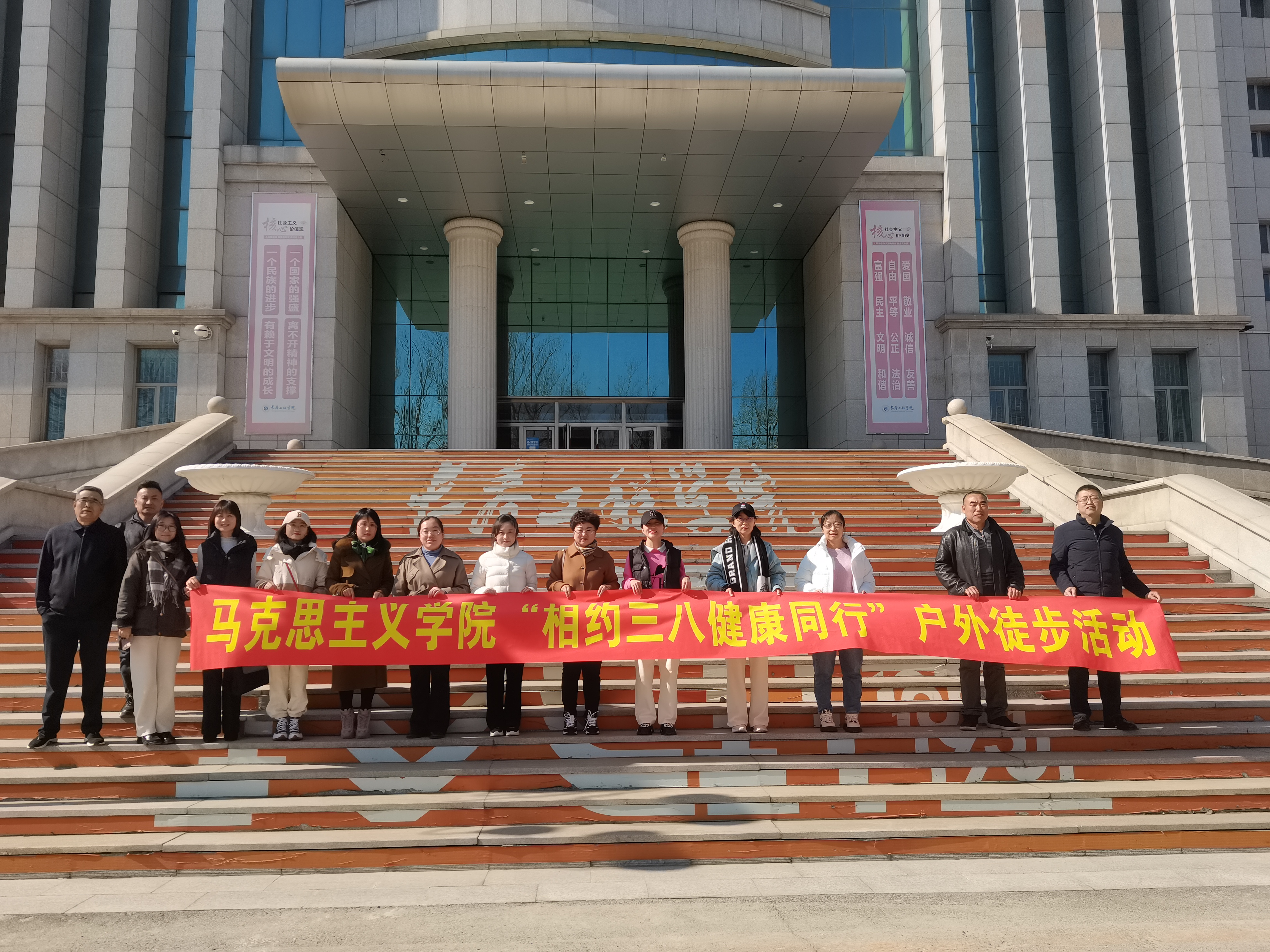 马克思主义学院开展了“相约三八,健康同行”户外徒步活动。