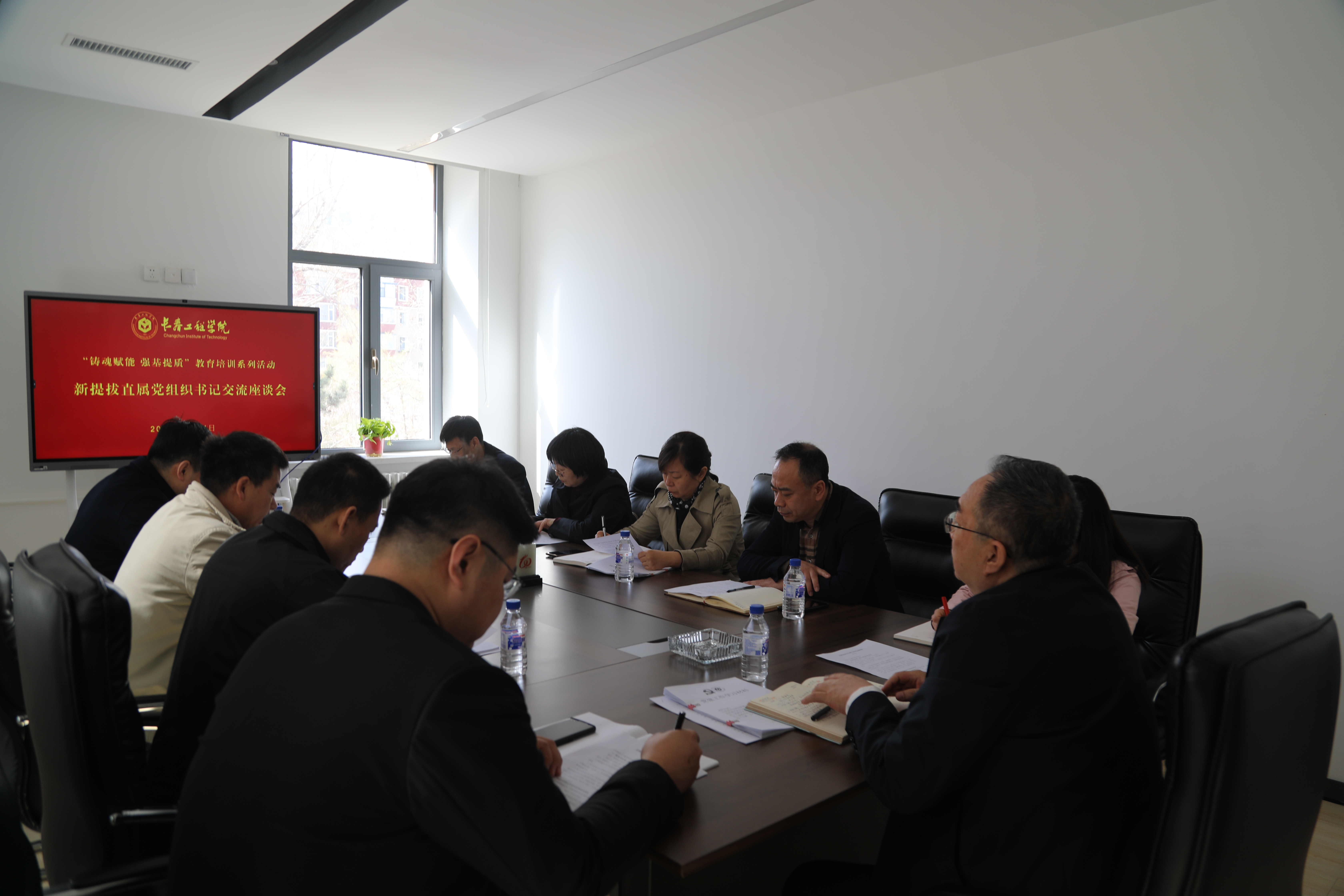 学校党委开展了直属党组织书记交流座谈会,党委副书记杨永生强调,各直属党组织书记要当好“一班之长”,坚定理想信念,自觉提高政治素质和理论素养,加强协调沟通能力,凝心聚力,切实提高解决问题困难的本领。电气与信息工程学院党委书记田东代、外国语学院党委书记张天文进行经验交流;机电工程学院党委书记王利涛、汽车工程学院党委书记高青松、水利与环境工程学院党委书记高金花、国际教育学院党委书记宿晓萍作表态发言。