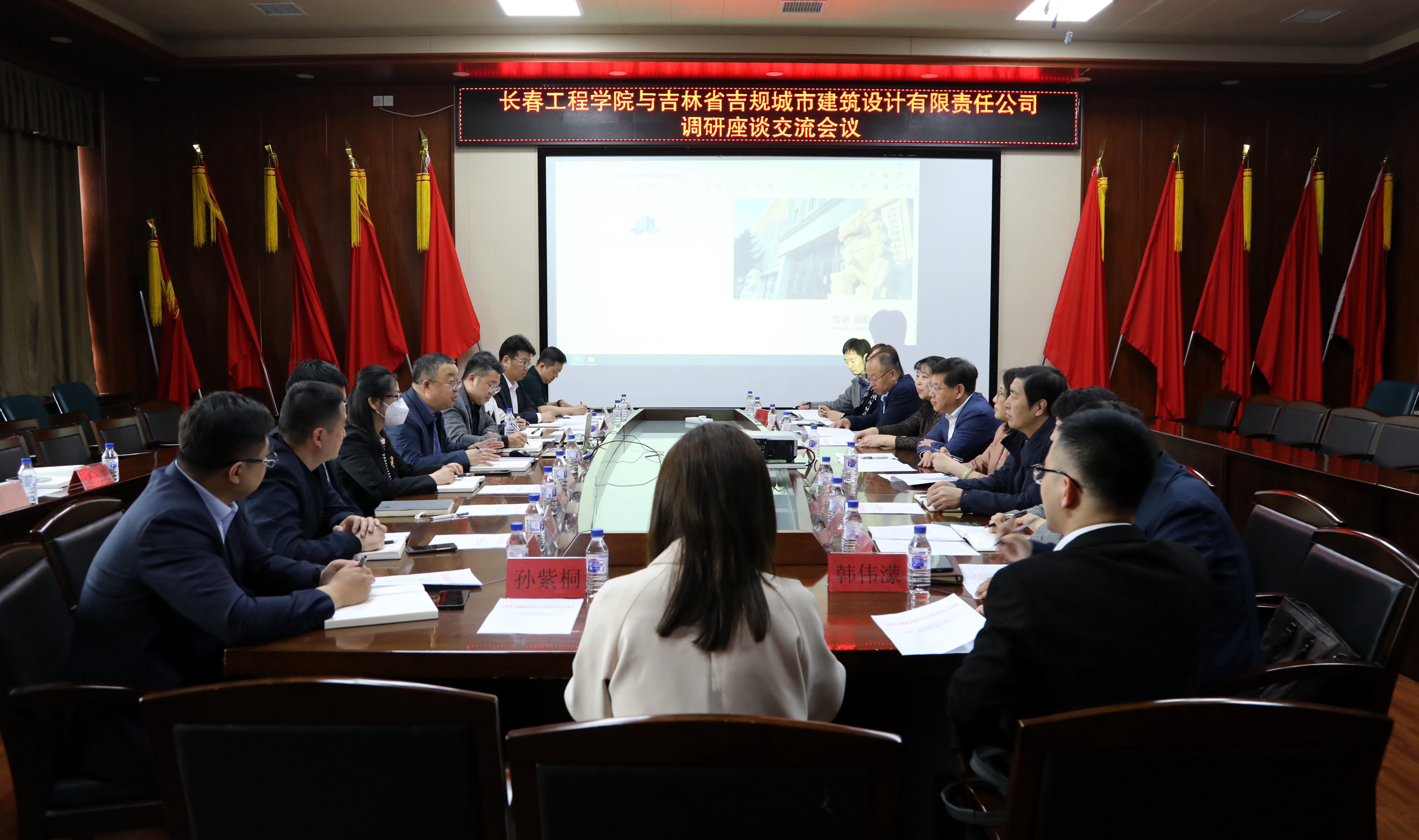 5月17日,学校校长陈权、副校长许骏率队赴吉林省吉规城市建筑设计有限责任公司开展调研交流,吉林省吉规公司党委书记刘欣伟、副院长李一楠、唐瑾婷及在吉规公司任职的校友10余人参加了座谈会。