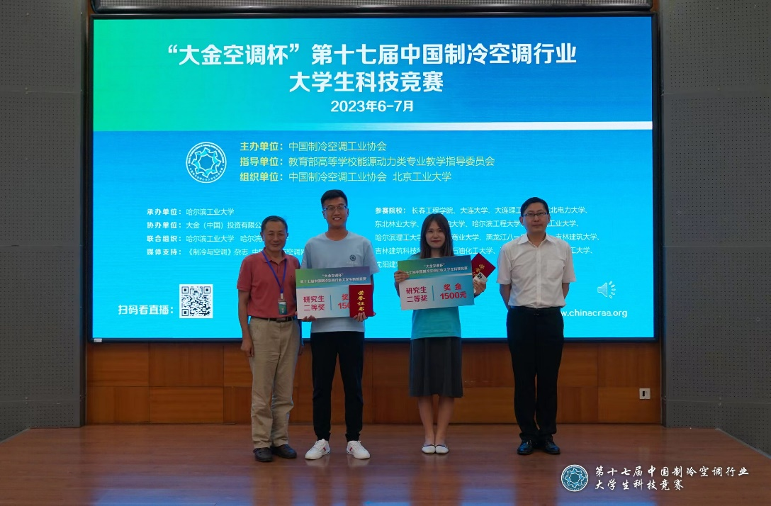 近日,由中国制冷空调工业协会主办,教育部高等学校能源动力类专业教学指导委员会指导,哈尔滨工业大学承办的“大金空调杯”第十七届中国制冷空调行业大学生科技竞赛(东北决赛点)圆满落下帷幕。我校由金洪文老师指导的供热、供燃气、通风及空调工程专业2022级研究生赵悦的作品“基于热泵技术在烤烟房高湿回风空气中的潜热回收节能烘干系统”,通过评委会专家的层层筛选成功入围决赛,并最终取得“研究生组二等奖”的优异成绩。