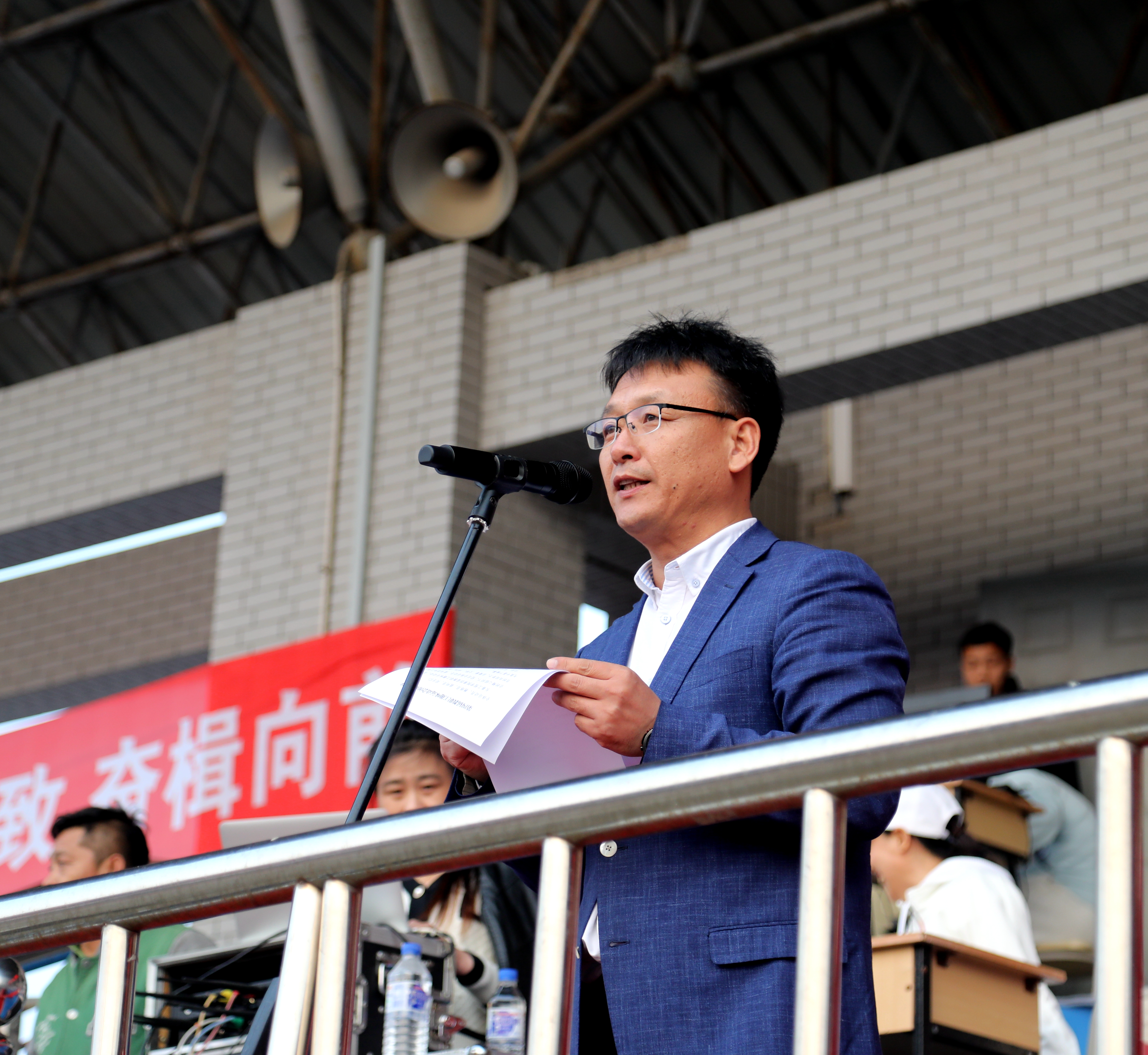 纪委书记王延博在开幕式上致辞。他指出,本届运动会的召开,是对我校教职工体育素质和精神风貌的一次展示和检阅。本届运动会比赛项目集趣味性、娱乐性、协作性和竞争性于一身,既是力量的角逐,又是智慧的较量;既是个人体育竞技水平的展示,又是对团队协作能力的检验。“团结、奋进、文明、友谊”是本届运动会的宗旨和主题。他希望,本届运动会能够赛出竞技水平、赛出道德风尚、赛出个性风采、赛出团结友谊、赛出长工程教职工的精神风貌。
