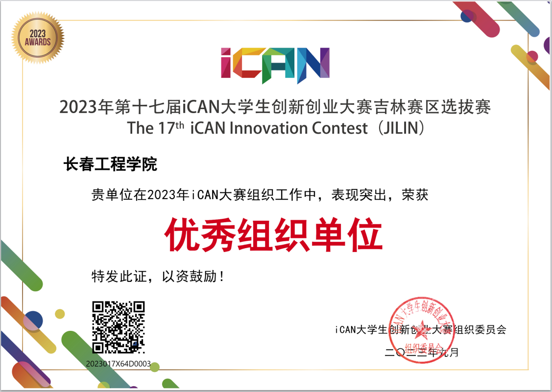 近日,第十七届iCAN大学生创新创业大赛吉林赛区比赛圆满落幕,我校共获得一等奖5项,二等奖8项,三等奖8项,5位指导教师获评为“优秀指导教师”,5个项目晋级国赛,学校荣获”吉林省第十七届iCAN大学生创新创业大赛优秀组织奖”荣誉称号。在此次比赛中,我校获奖总数、获一等奖总数、晋级国赛项目总数均名列前茅。