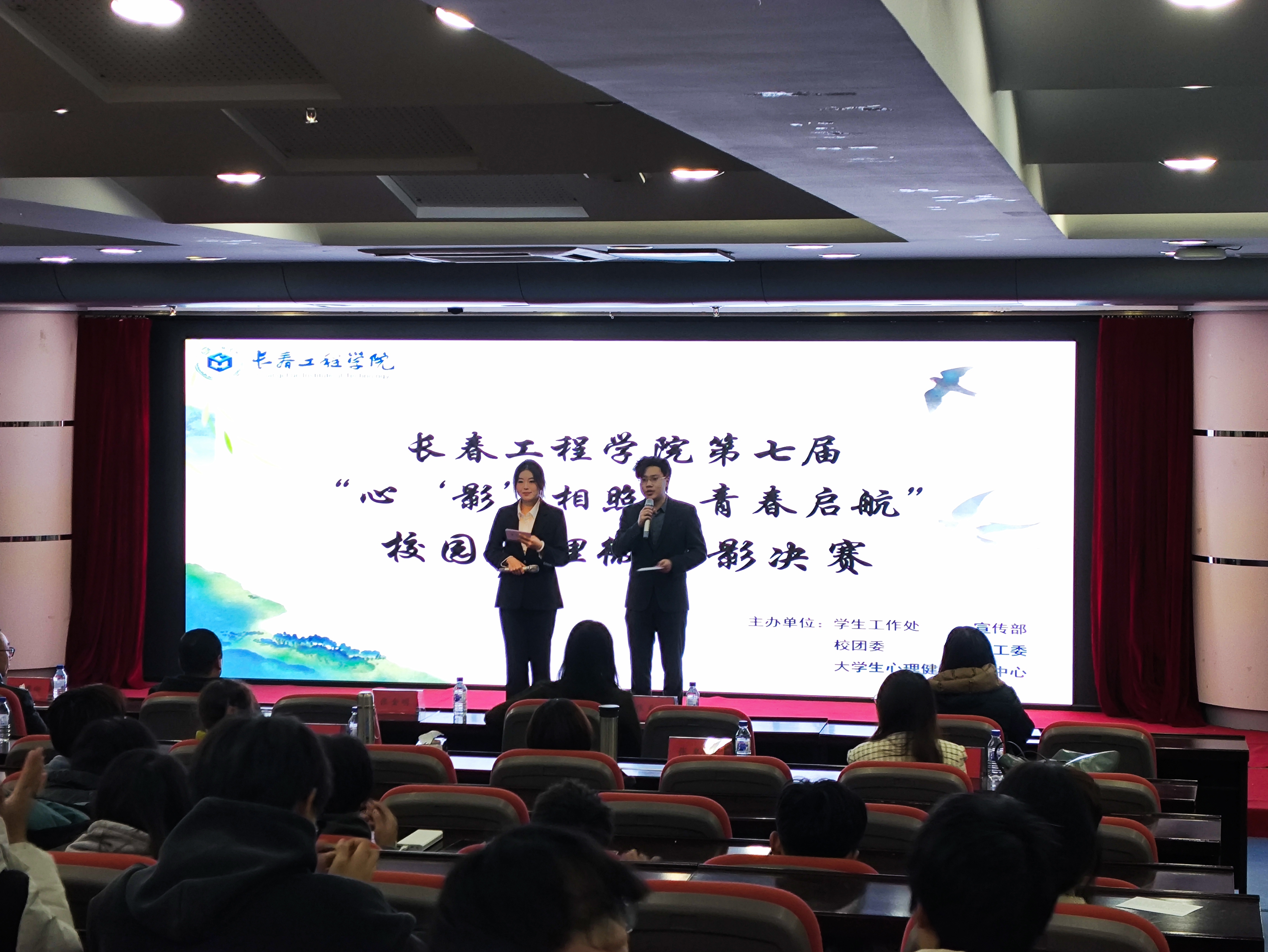 为进一步宣传和普及心理健康知识,营造有利于学生身心健康发展的校园文化氛围,增强学生对心理健康状况和自我保健意识的关注与重视,塑造积极心理品质,11月10日,由学生工作处、党委宣传部、校团委、关工委、大学生心理健康教育咨询中心主办,大学生心理发展联合会承办的长春工程学院第七届“心‘影’相照,青春启航”校园心理微电影决赛在第二报告厅举行。