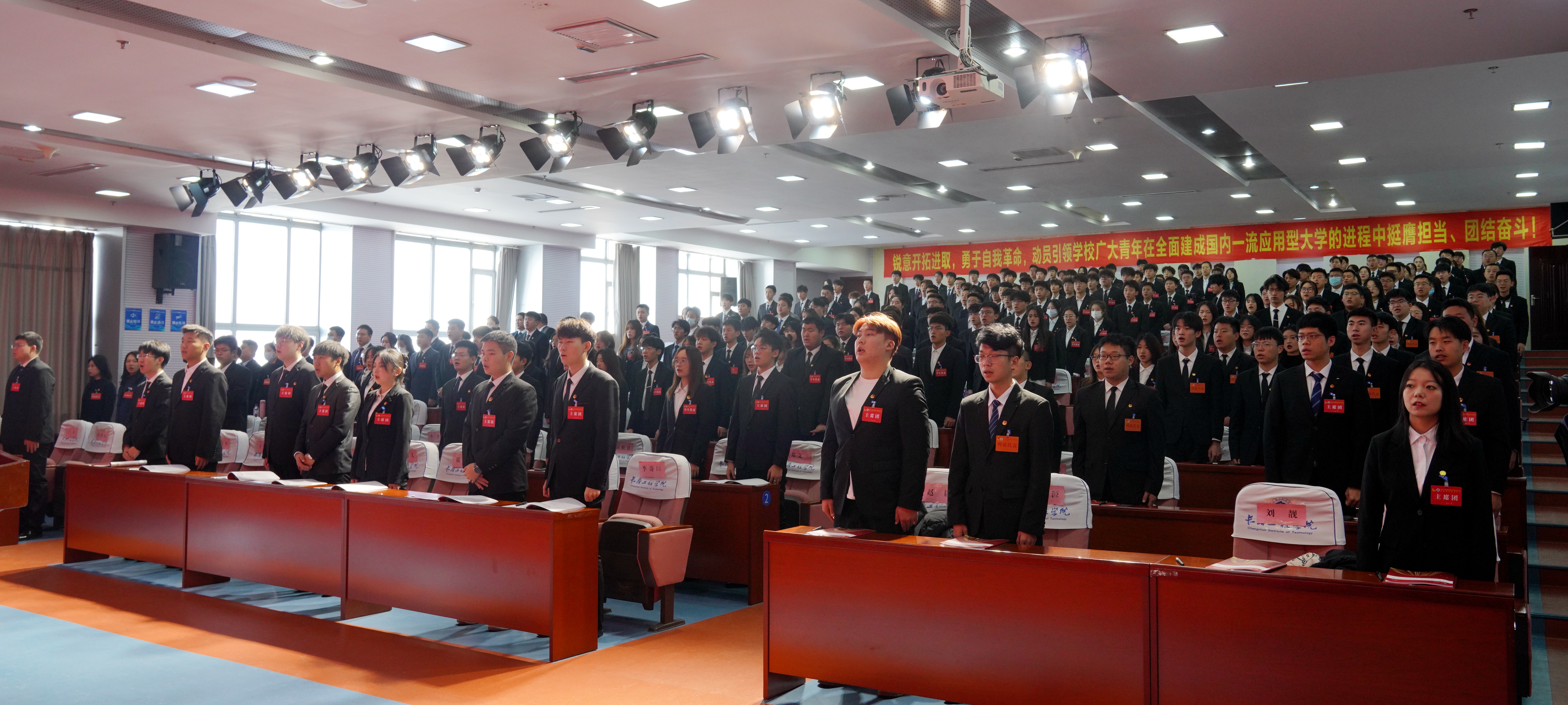 学校相关职能部门负责人,全体专兼职团干部及本专科生代表169人、研究生代表37人参加大会。