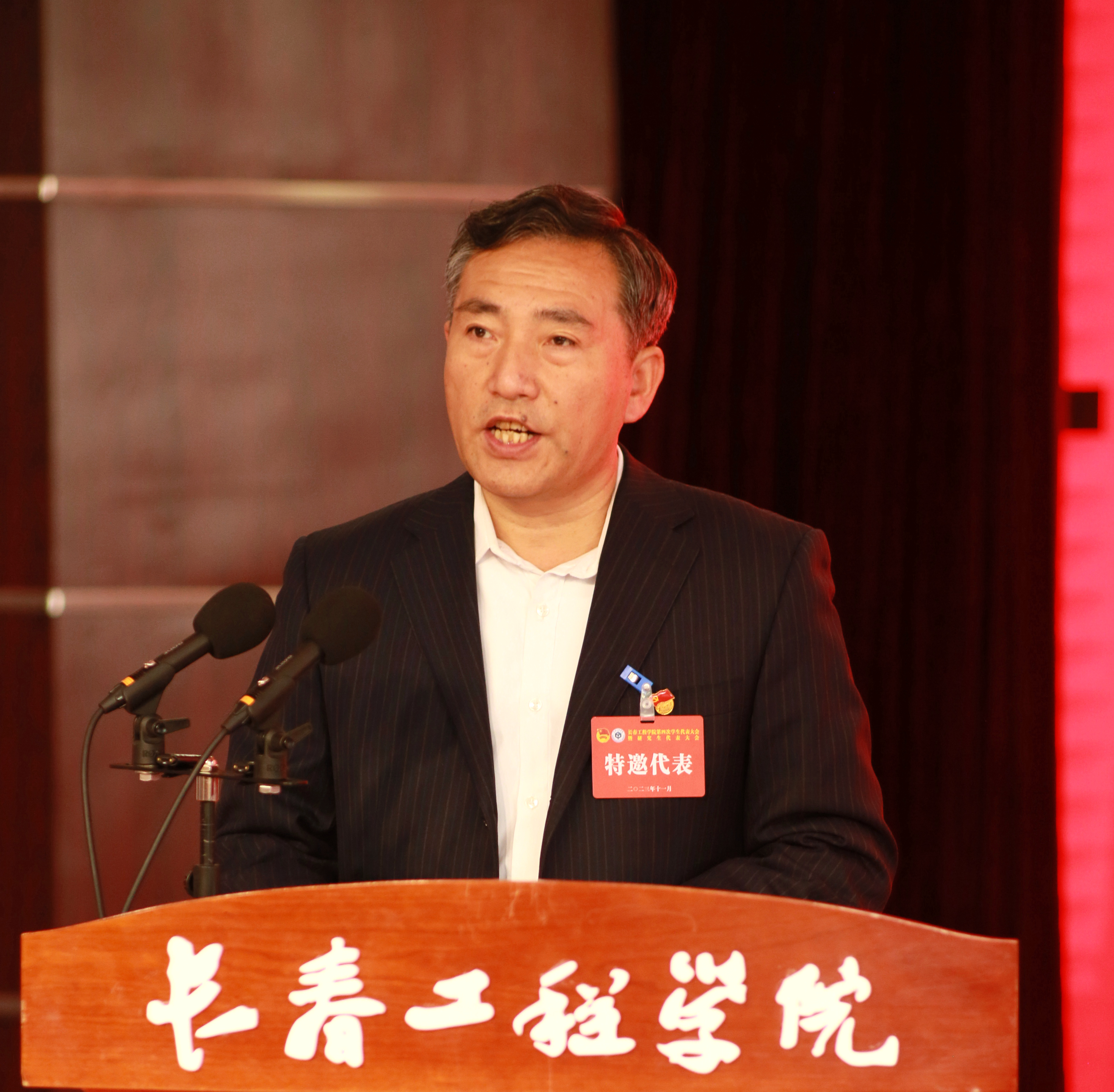 吉林大学、延边大学等兄弟院校发来贺信,预祝大会顺利召开。长春工业大学学生代表作为兄弟院校的代表到会致辞。