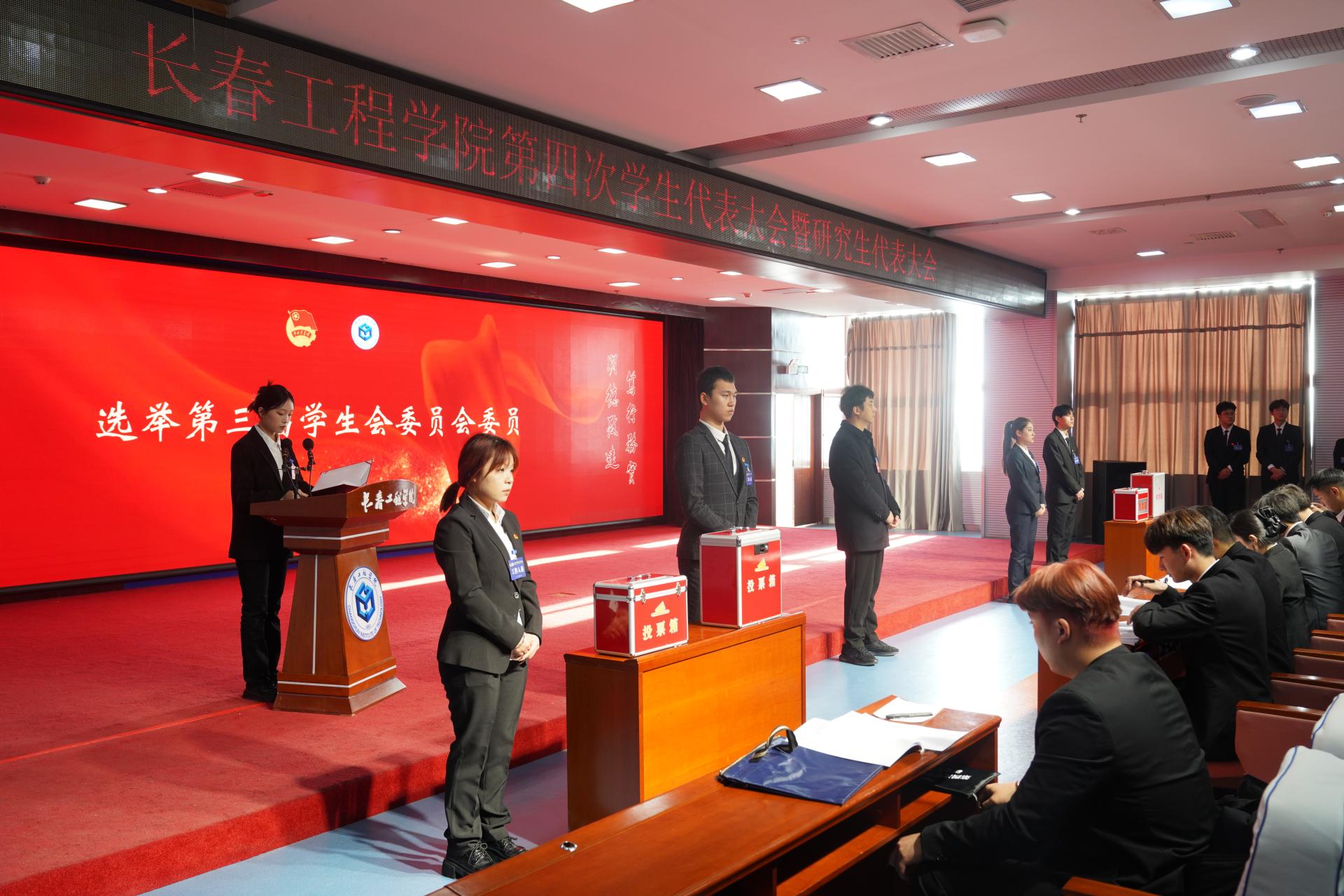 开幕式结束后,大会审议通过了长春工程学院第二十三届学生会组织、第十届研究生会组织主席团工作报告及第二届学生会委员会、第二届研究生会委员会工作报告,选举产生了第二十四届学生会组织主席团、第十一届研究生会组织主席团成员及第三届学生会委员会、第三届研究生会委员会委员。