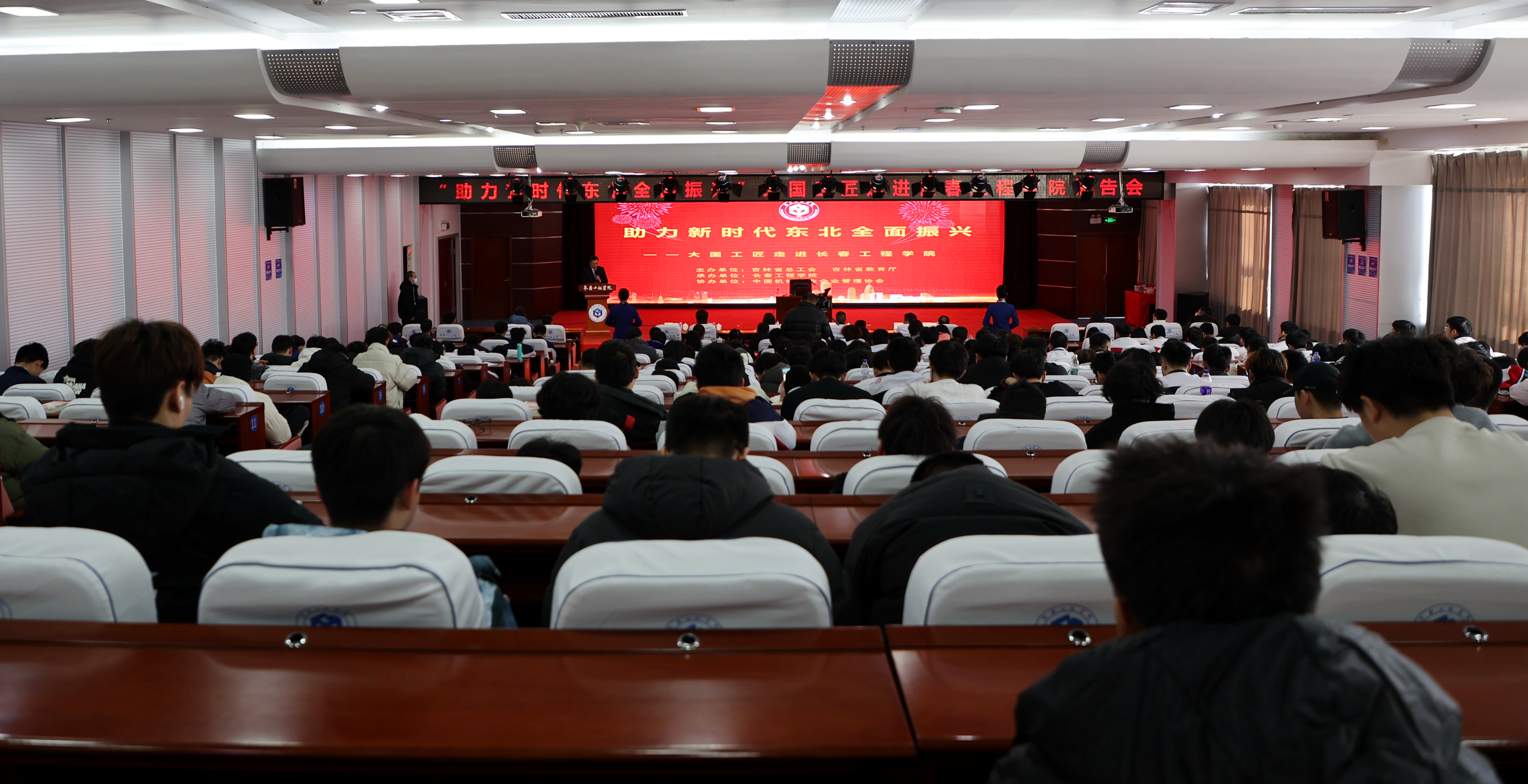 弘扬工匠精神,学习时代楷模。11月29日,由吉林省总工会、吉林省教育厅主办的“助力新时代东北全面振兴——大国工匠走进长春工程学院”宣讲报告会在我校第三报告厅召开。学校领导陈权、刘兆国、王延博,吉林省总工会资产监督管理办公室主任赵哲、教育厅高教处副处长杜昌军出席会议。会议由学校党委副书记刘兆国主持。
