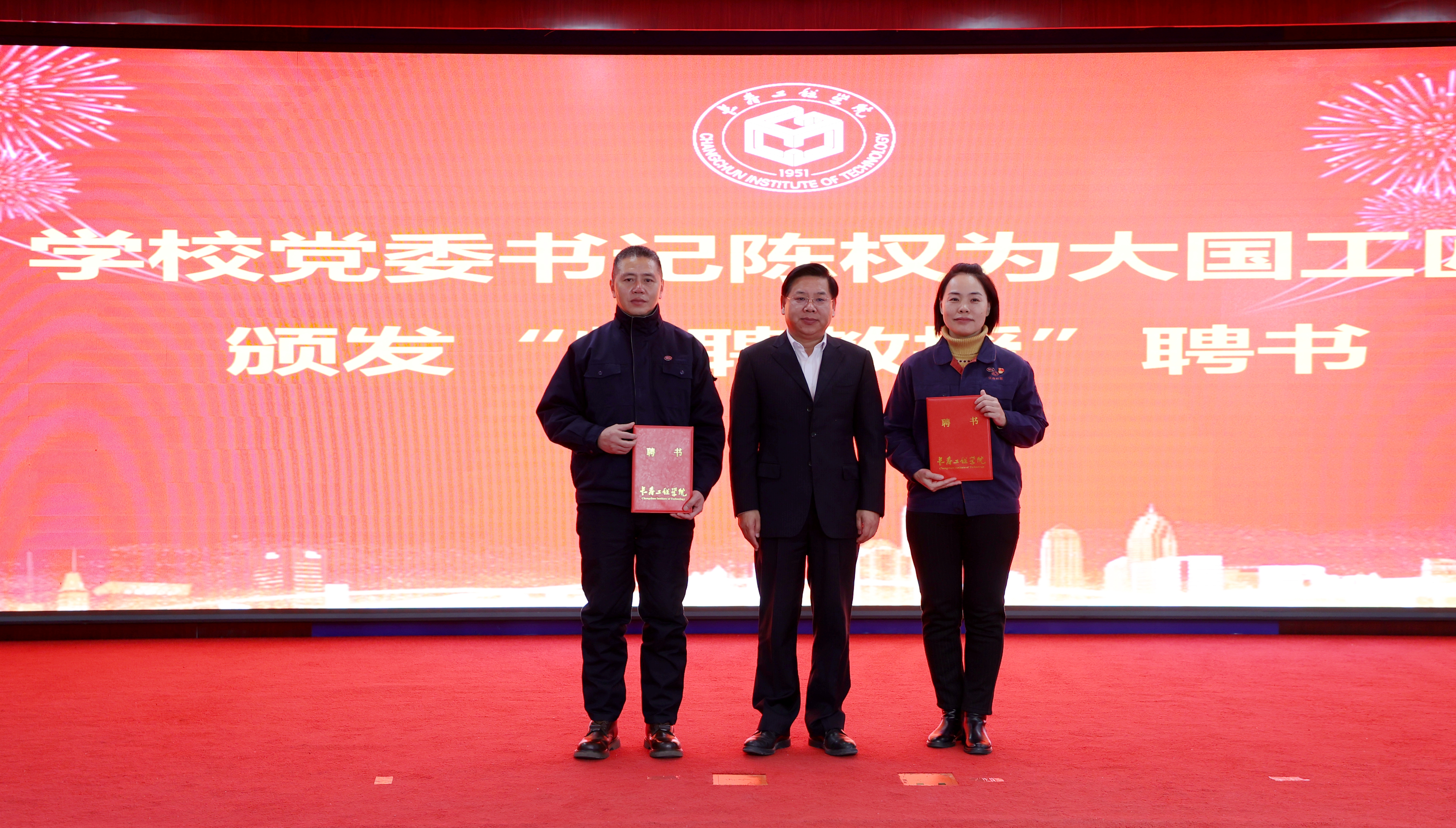 报告会上,学校党委书记陈权为两位大国工匠颁发了“特聘教授”聘书。