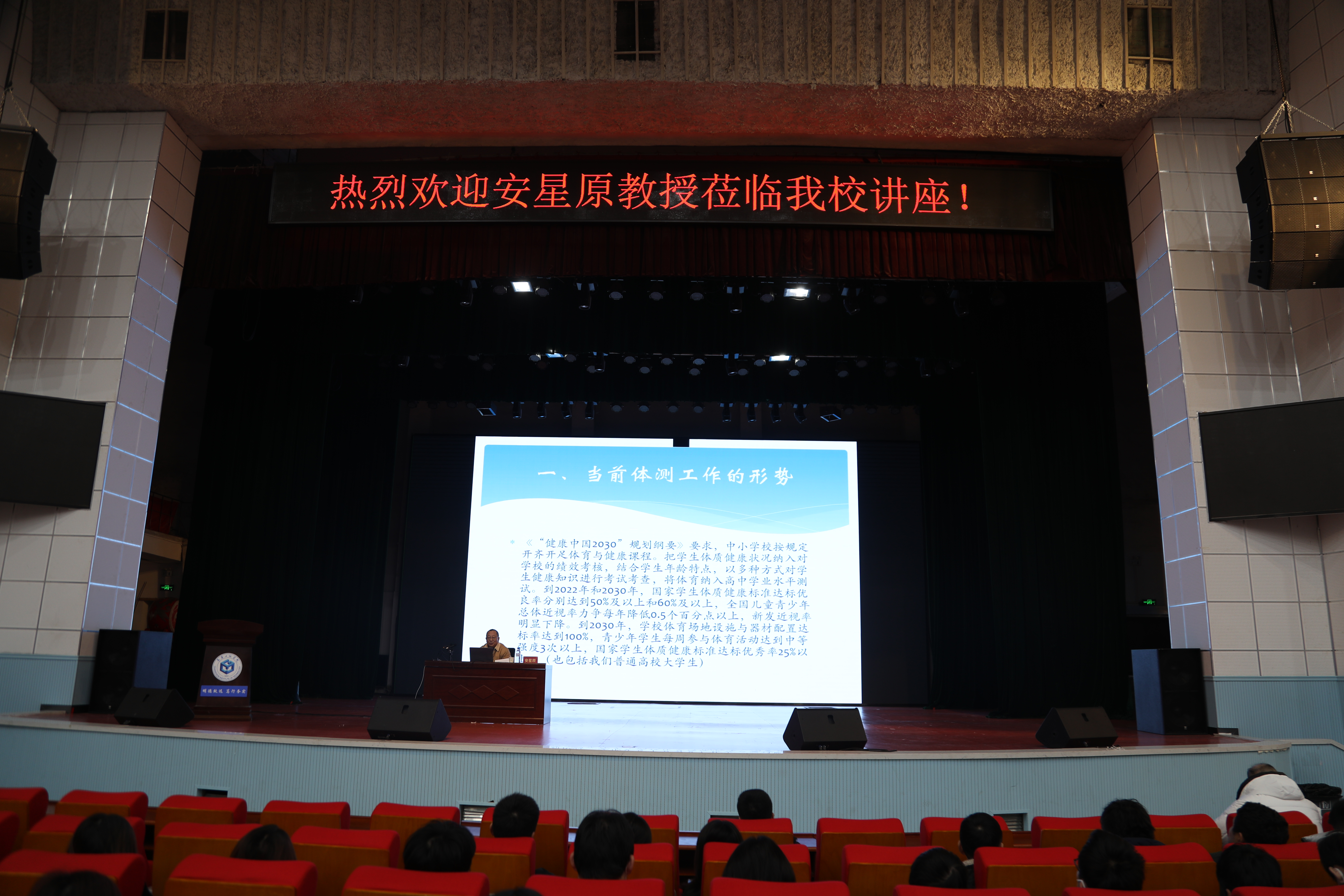 12月4日,《国家学生体质健康标准》测试专题讲座在我校湖西校区大学生活动中心举行。本次讲座邀请2023年教育部学生体质测试复查工作吉林省高校组组长、哈尔滨体育学院安星原教授主讲,旨在落实“五育并举”的教育方针,强化学生体育教育,帮助广大学生和教师更好地理解《国家学生体质健康标准》,为提升学生体质健康水平提供有益的指导和帮助。此次讲座由体育教研部和教务处、学生工作处、校团委联合举办。