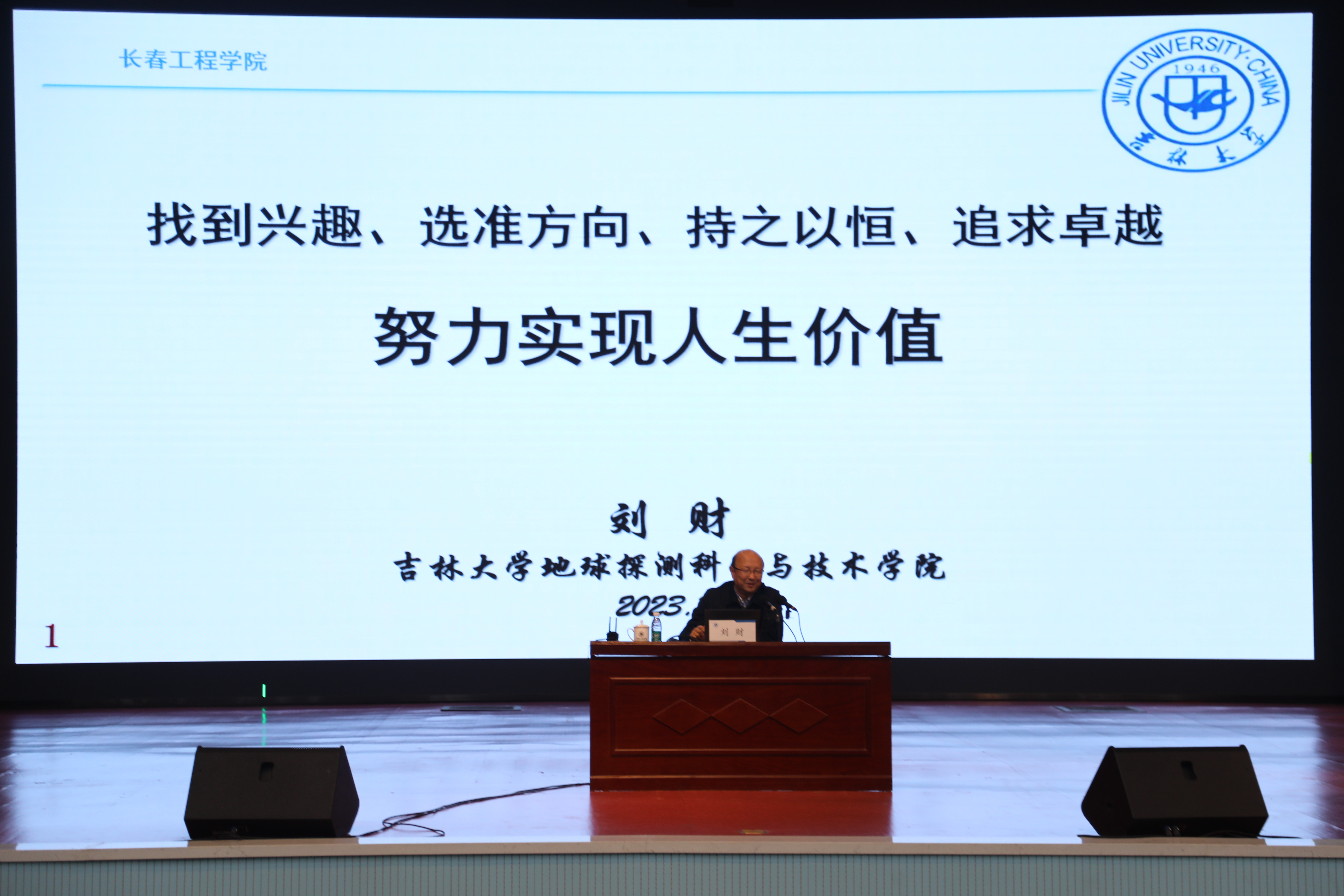 为深入学习贯彻习近平新时代中国特色社会主义思想和习近平总书记对黄大年同志先进事迹做出的重要指示精神,12月6日,我校在湖西校区大学生活动中心举办“思政大讲堂”专题讲座。学校邀请吉林大学刘财教授以《找到兴趣、选准方向、持之以恒、追求卓越,努力实现人生价值》为题作专题报告。学校党委副书记刘兆国出席报告会。报告会由党委常委、党委学生工作部部长温克利主持。