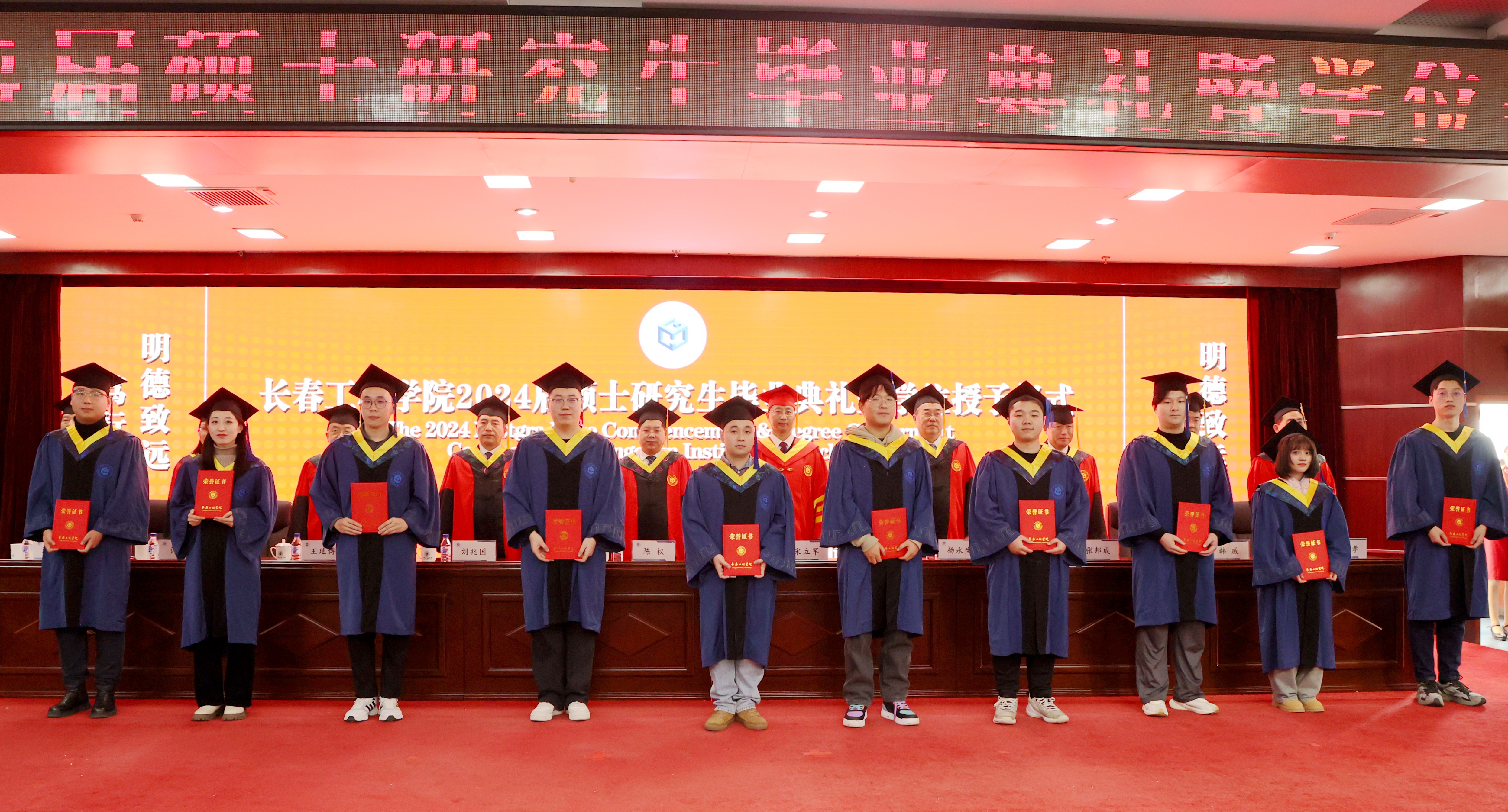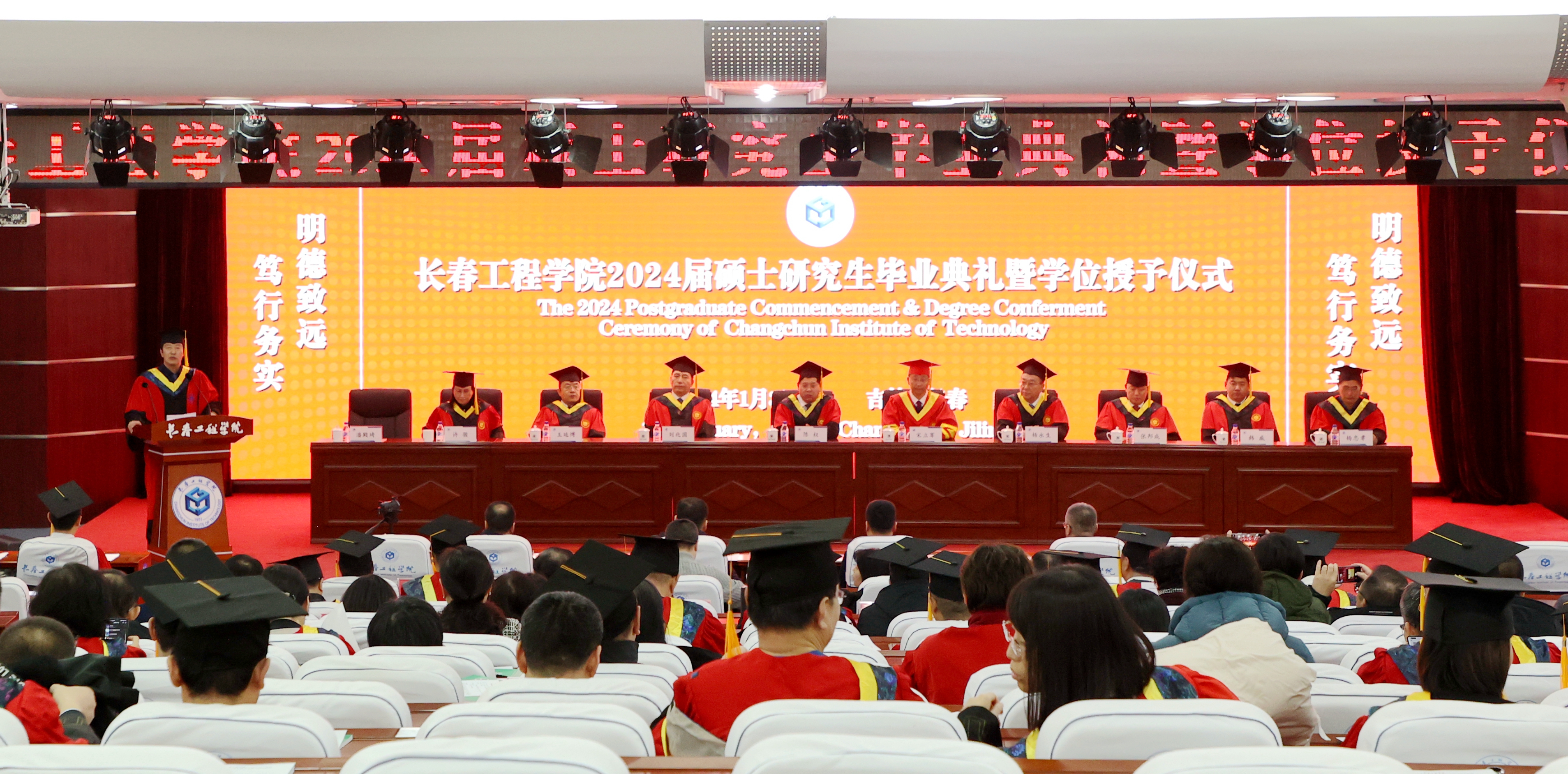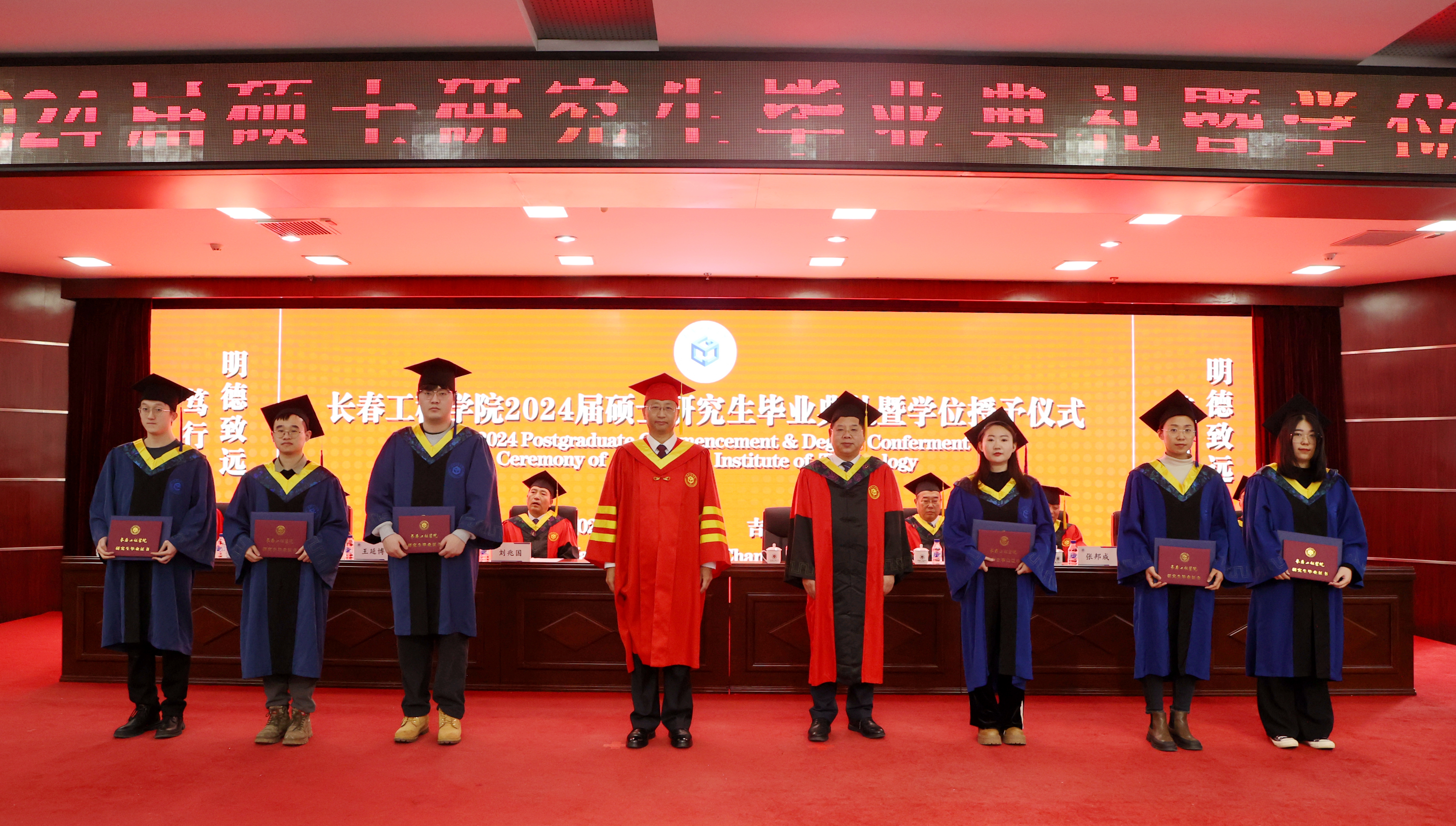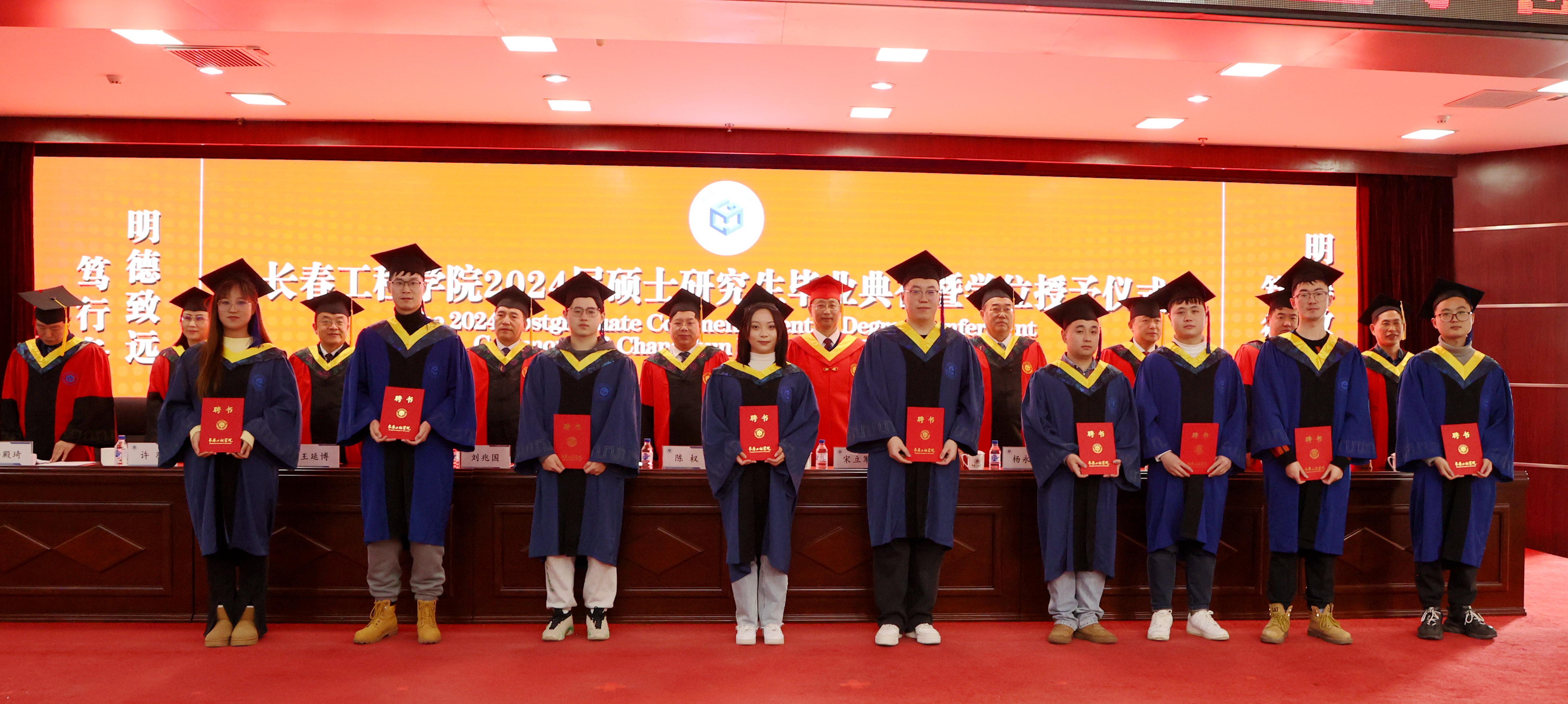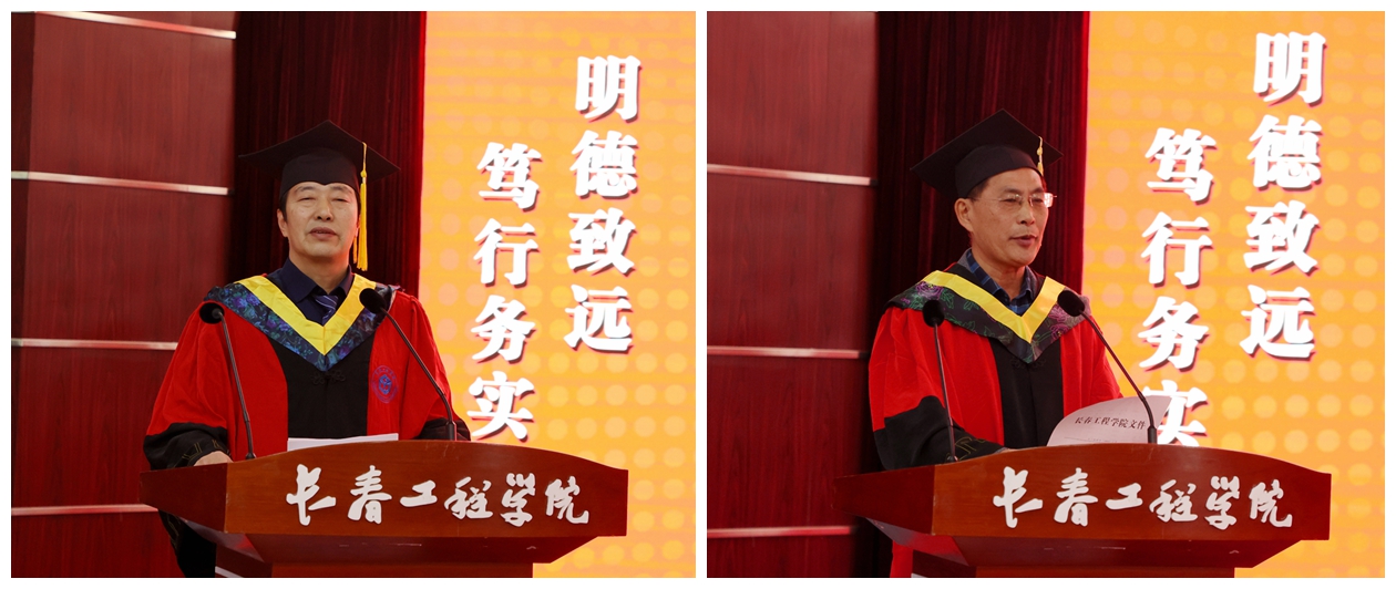 毕业典礼上,学校相关职能部门负责人杨忠孝、周玲、时述凤、时红梅分别宣读了《关于授予2024届丁超等141名研究生土木水利硕士专业学位的决定》《关于公布2024届校级优秀硕士学位论文评选结果的决定》《关于表彰2024届优秀毕业硕士研究生的决定》《关于聘任长春工程学院2024届研究生年级校友理事和校友工作联络员的决定》。