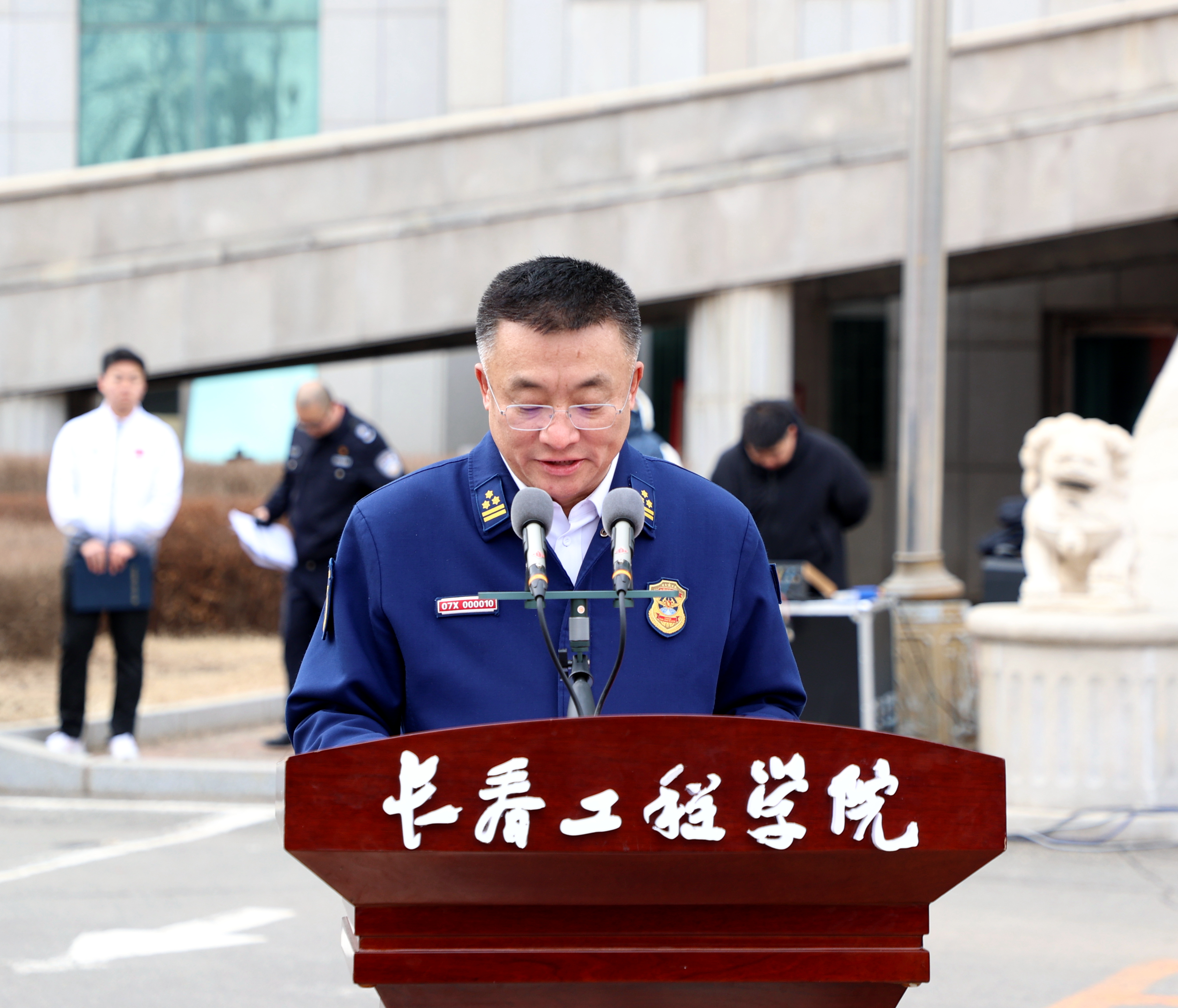 韩威副校长在仪式上讲话,他表示,一直以来学校党委始终深入贯彻落实习近平总书记关于安全生产的重要思想和重要指示精神,以及省委省政府、省委教育工委对安全稳定工作的一系列要求,站在讲政治的高度,认清形势,深刻吸取事故教训,克服麻痹大意思想,按照“三管三必须”的工作原则强化责任落实,多举措、强联动,标本兼治,统筹安全和发展,确保校园安全形势持续向好。