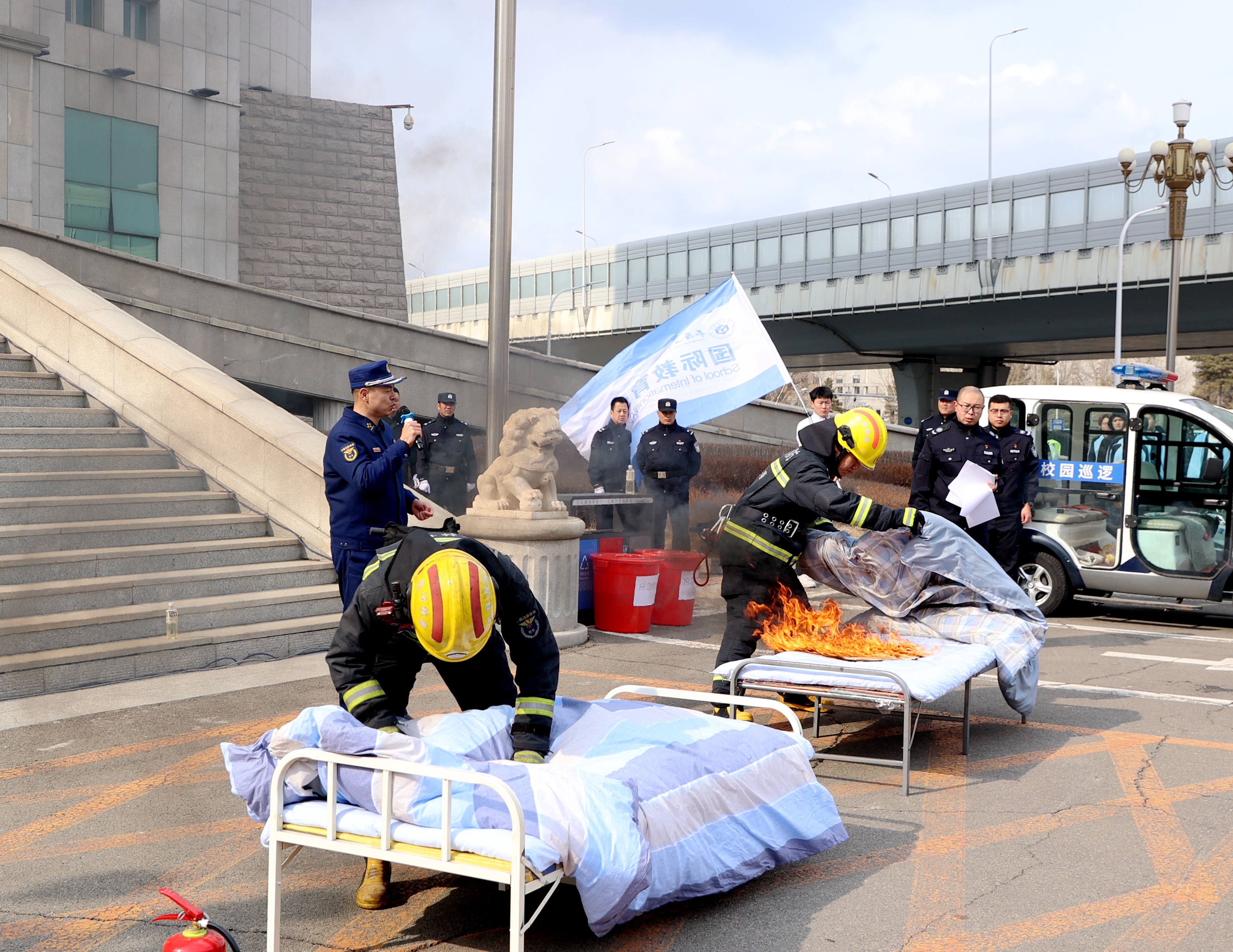 参加活动的人员现场观摩了消防疏散及灭火演练。朝阳消防队现场演示床铺灭火、杂物灭火及常见火灾扑救方法。