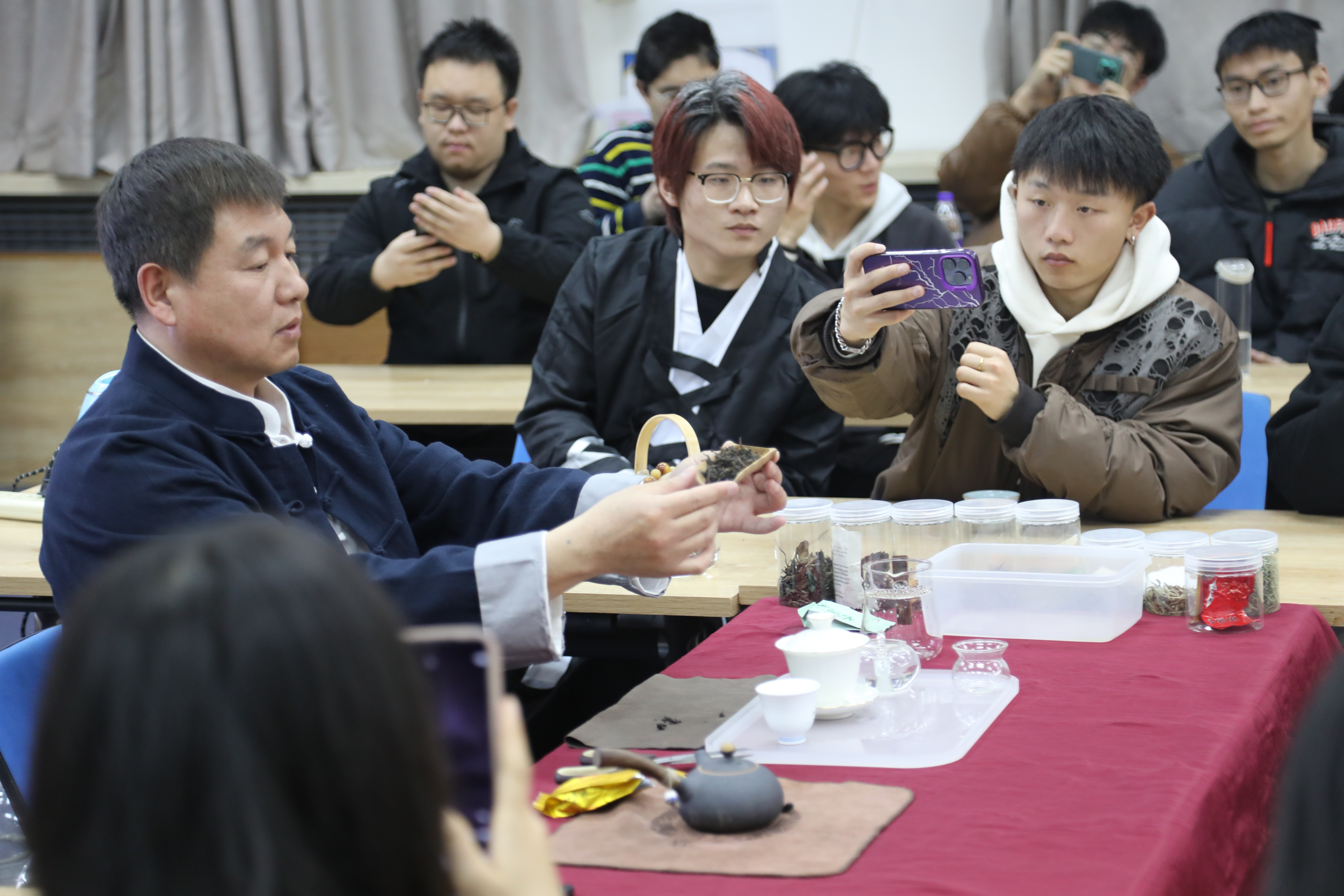在课上,学生学习茶叶的分类、品质鉴别、储存与保管等基本知识,掌握泡茶、品茶、赏茶等茶艺表演技巧,并了解茶文化的起源、发展以及茶与诗词、茶与禅道等文化元素的关系,从而实现“识茶、学艺、懂礼、明德”的课程育人目标。