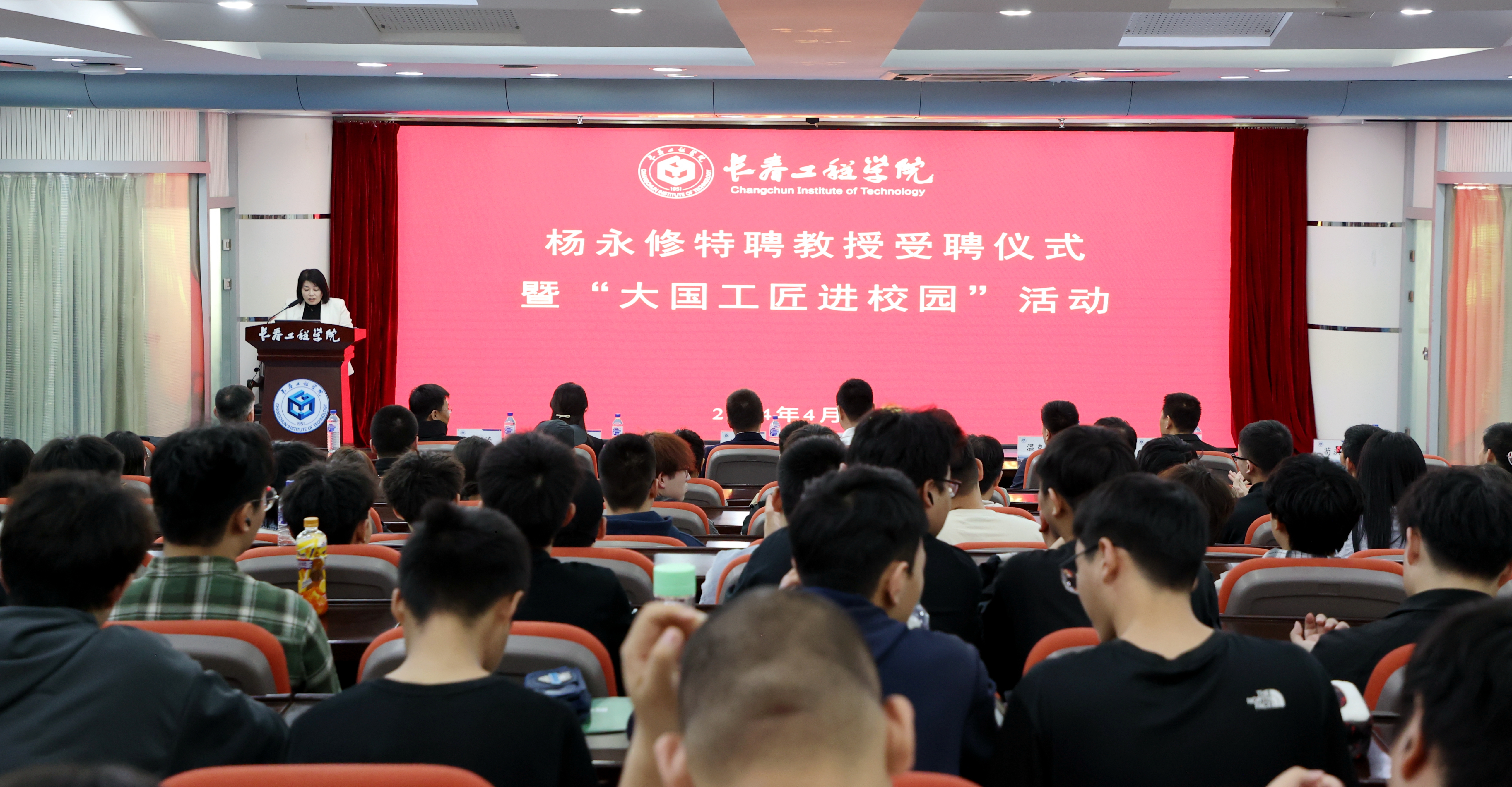 为深入学习贯彻习近平新时代中国特色社会主义思想和党的二十大精神,激励引导青年学生继承、弘扬工匠精神,让更多青年学子走上成才报国之路,4月24日,杨永修特聘教授受聘仪式暨“大国工匠进校园”活动在学校第二报告厅举行,我校副校长张邦成参加活动。本次活动由美育劳育教育中心主任荀洪梅主持。