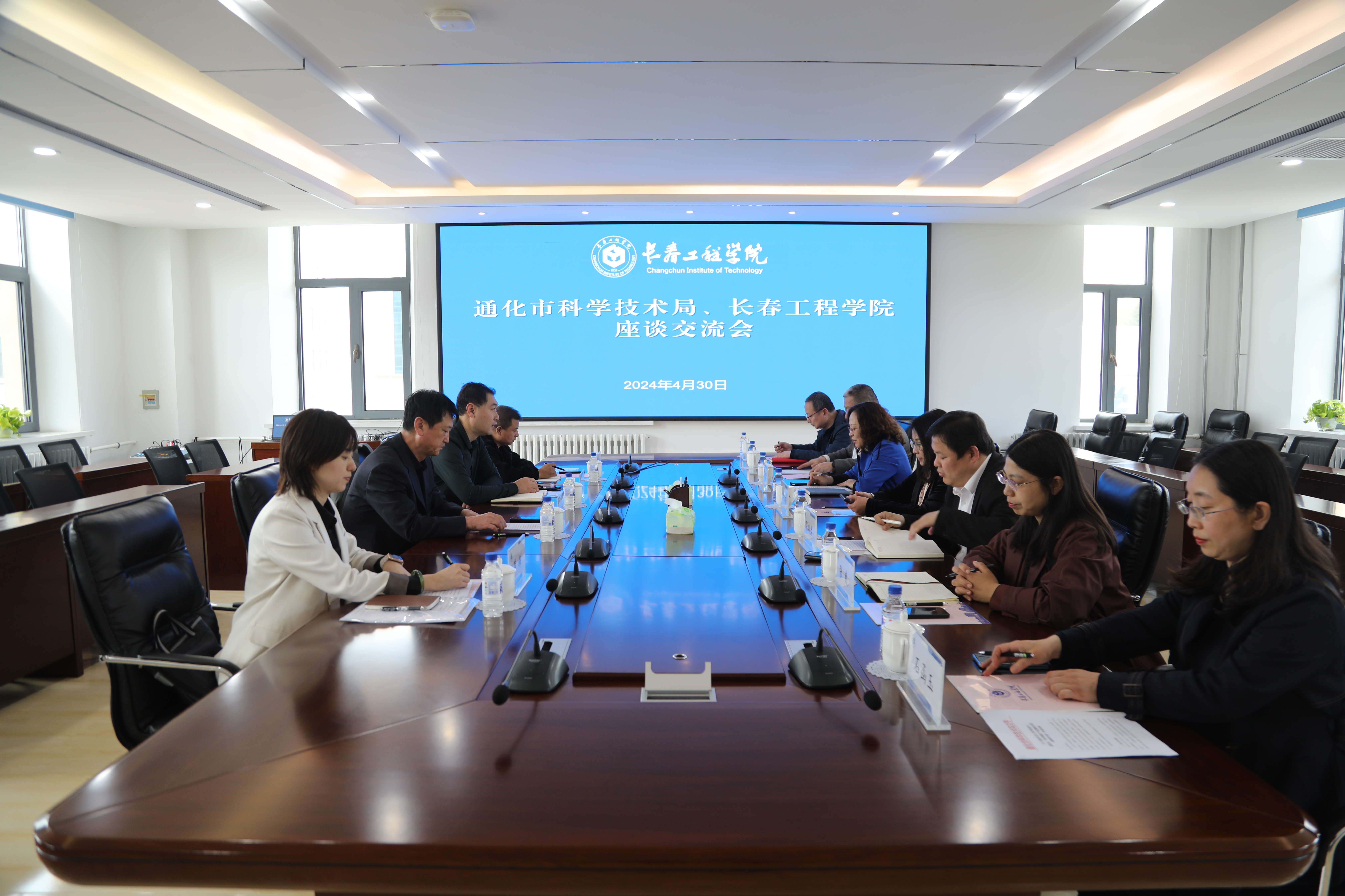 4月30日下午,通化市科学技术局副局长王亚清一行4人到我校座谈交流,学校副校长许骏出席会议。