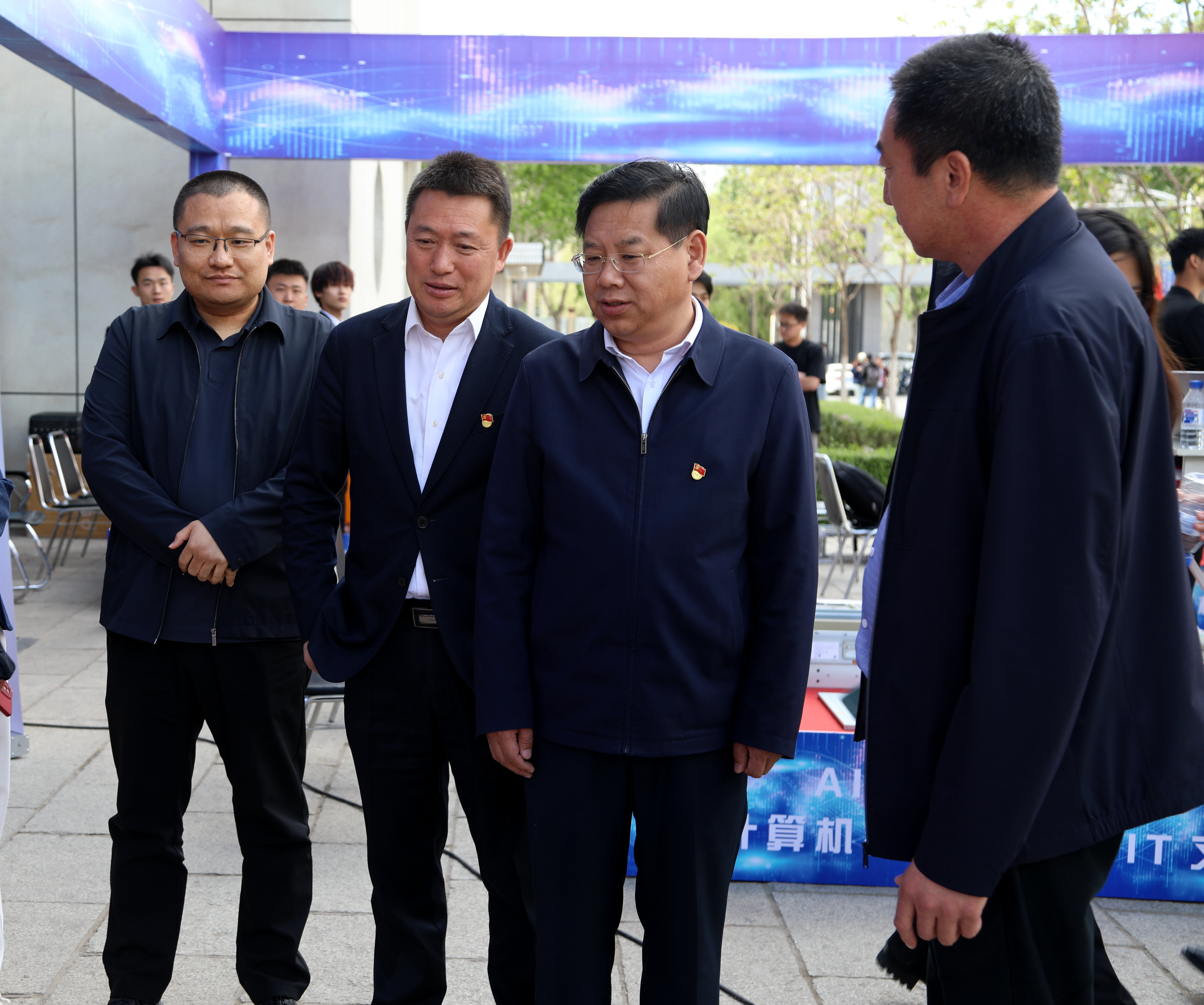 学校领导陈权、刘兆国、杨永生、王延博、张邦成到活动现场与师生们进行了交流,并就展示内容与师生们进行了热烈交流。