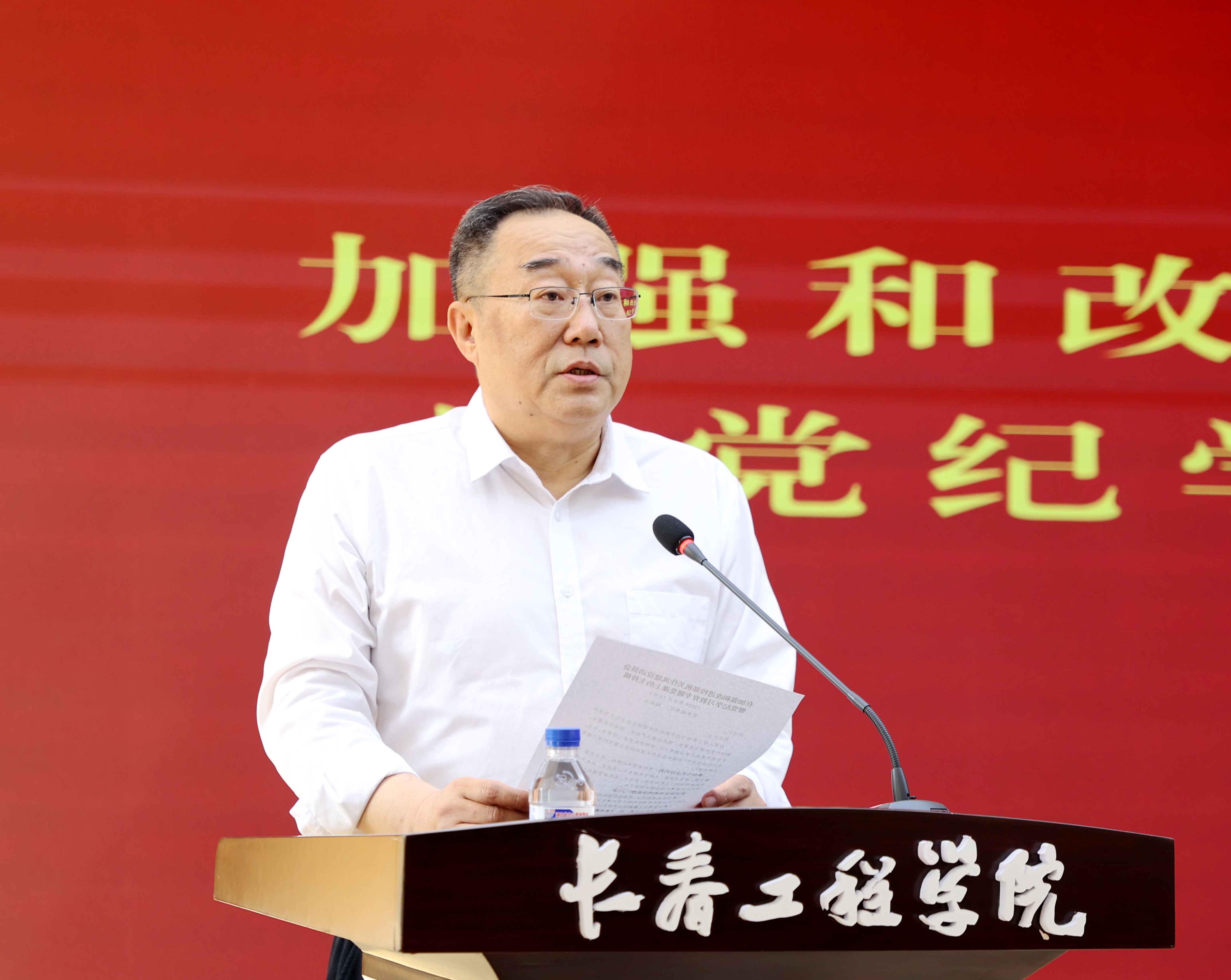 在会上,陈权书记指出,要把加强和改进校部机关作风建设作为深化党纪学习教育的重要举措。作为全面从严治党的两个重要抓手,纪律建设和作风建设是紧密相连的,好的作风依靠严明的纪律作保障,严明的纪律需要好的作风作支撑。今天,我们检验党纪学习教育的实效,一个最重要的体现,就是要看我们的作风是否得到了加强和改进,是否让师生感受到了学习教育的效果。