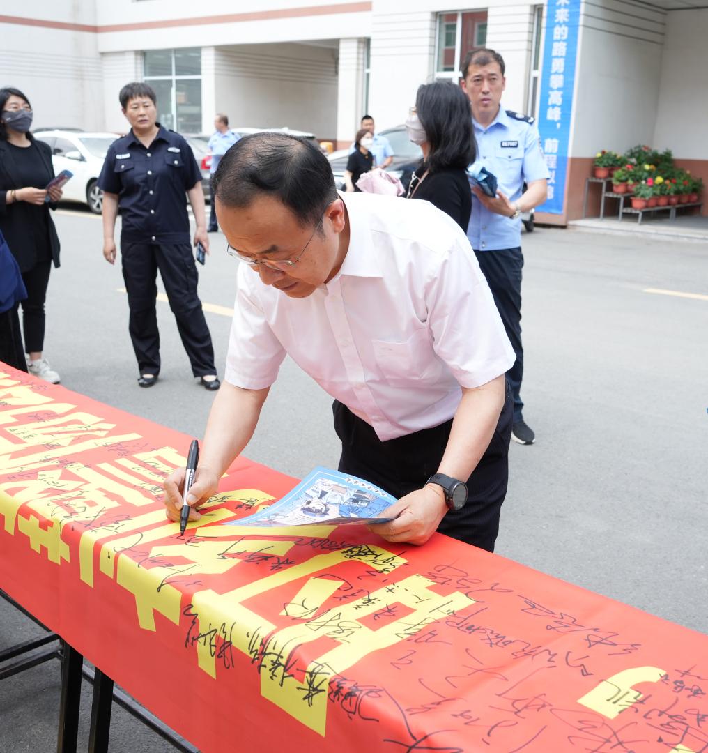 为强化全国“安全宣传咨询日”的宣传力度,进一步提升全校师生的安全意识和应急处置能力,6月14日,学校安全保卫处联合长春市公安局内保支队、朝阳分局自由大路派出所和宽平大路派出所,面向全校师生开展了“安全二字记心中,时刻警惕弦紧绷,校园事故不发生,平安幸福伴君行”承诺践诺签名及“反诈宣传进校园”活动。活动现场,属地的公安民警与学校安全保卫处的同志们共同向广大师生就安全防范和应急知识进行了科普,并发放了宣传手册。