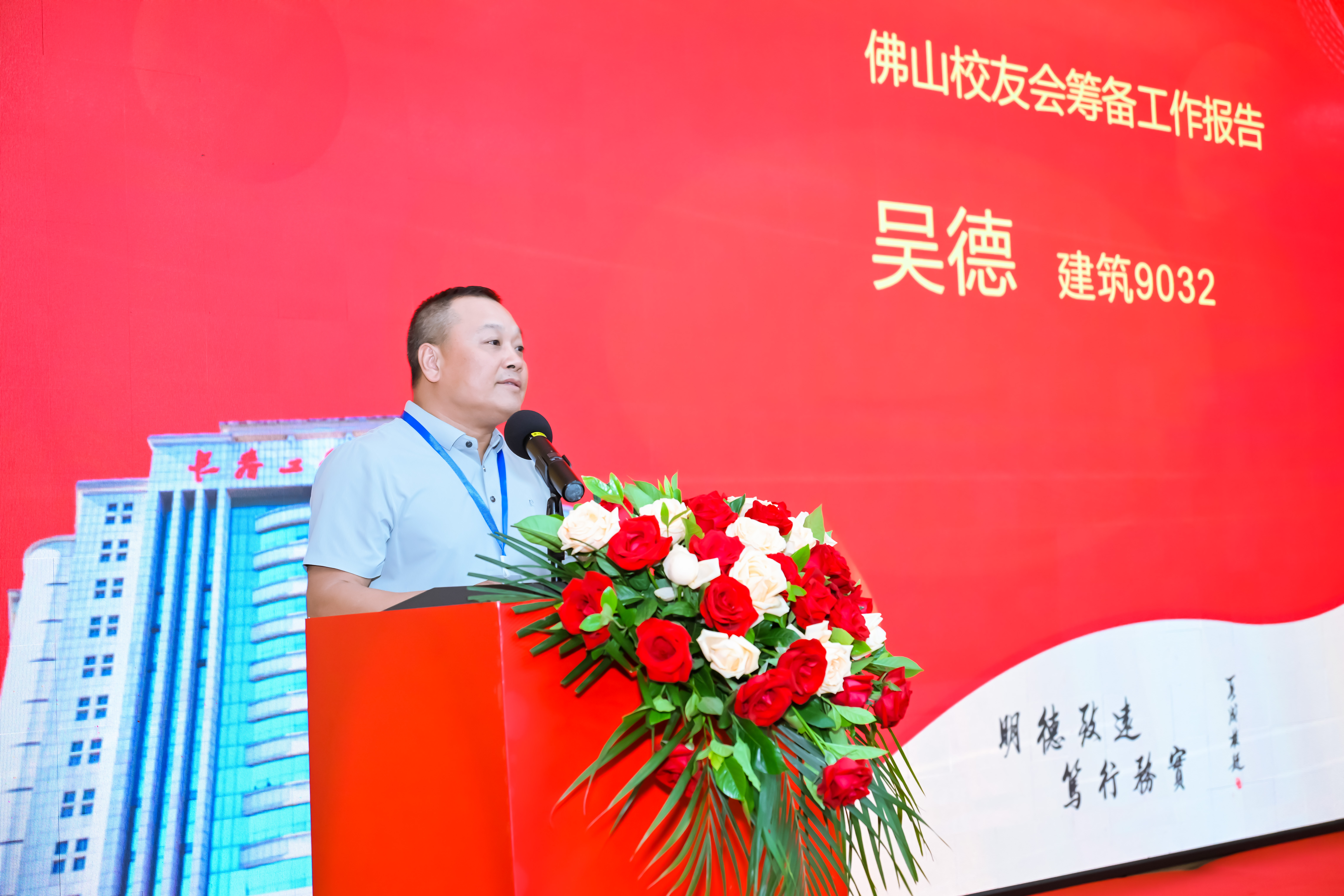 刘兆国副书记向佛山校友会授旗并致辞。他介绍了母校近几年来取得的发展成就,并代表母校向佛山校友会的成立表示衷心祝贺。他表示,校友们是母校荣誉的忠实捍卫者、母校品牌的有力塑造者、母校发展的积极贡献者,母校的每一步发展都离不开校友们的支持,他代表学校党委向校友们表示衷心感谢。他希望佛山校友会要加强自身建设,努力实现密切校友情感、助力校友成长的宗旨;希望佛山校友们始终牢记“工程报国”的使命,在成就自己事业的同时,承担起服务社会的使命,为奋力谱写中国式现代化的佛山实践新篇章作出新的更大贡献;希望佛山校友们一如既往地关心母校建设,支持母校发展。