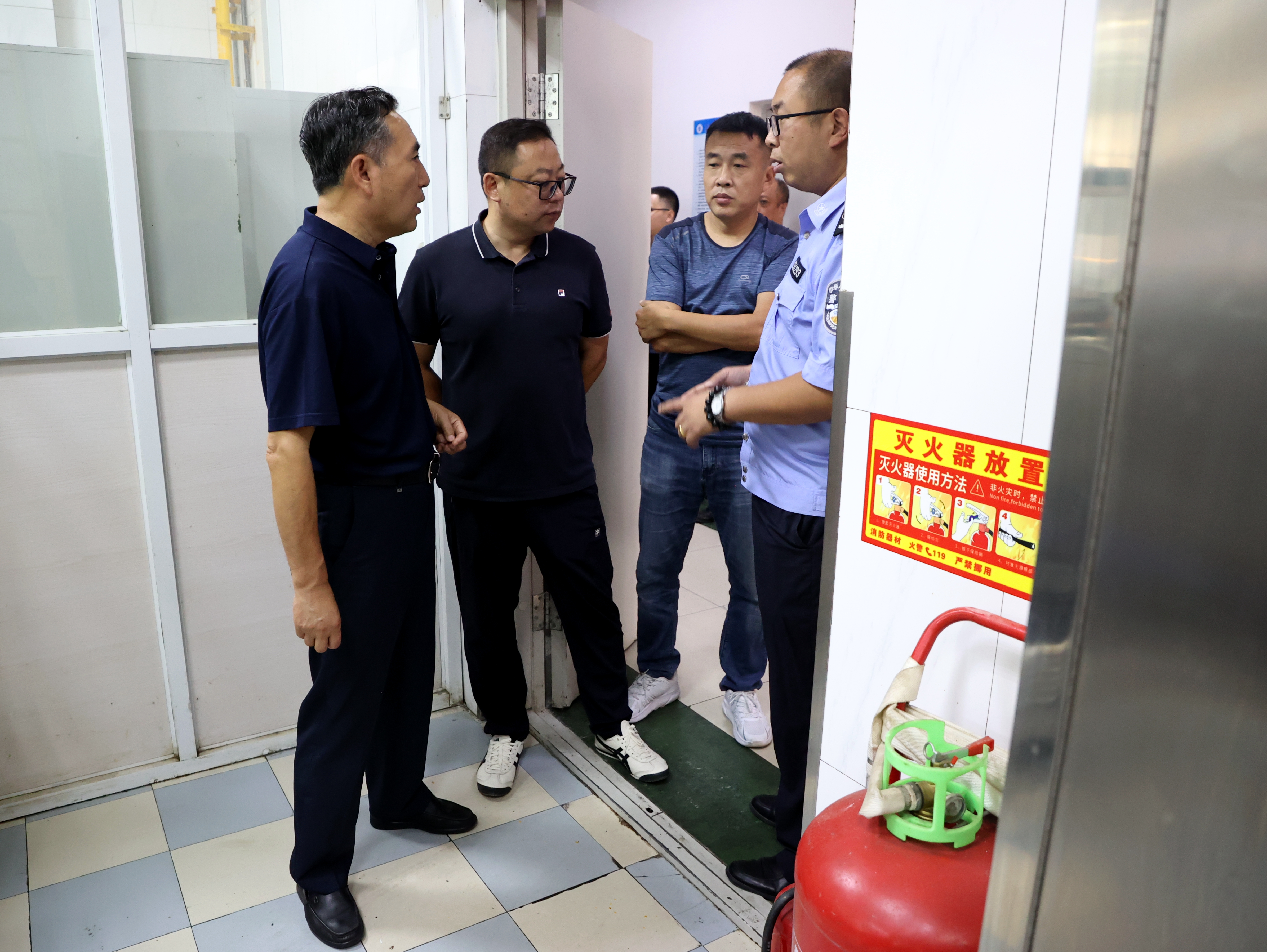 刘兆国副书记带队检查了湖西校区食堂、学生公寓、校医院、逸夫图书馆、化学药品库、消防控制室等地,对可能存在的安全隐患与相关部门进行交流,并提出意见和要求。 他强调,要严格按照“党政同责、一岗双责、齐抓共管、失职追责”和“三管三必须”要求,健全完善管理制度,强化责任落实,树牢“隐患就是事故”的观念,时刻绷紧安全这根弦;要主动开展常态化安全隐患排查和安全教育,全面摸清学校安全风险底数,统筹推进隐患排查、整改,坚决守住安全底线,杜绝校园安全事故发生,保障师生生命财产安全。