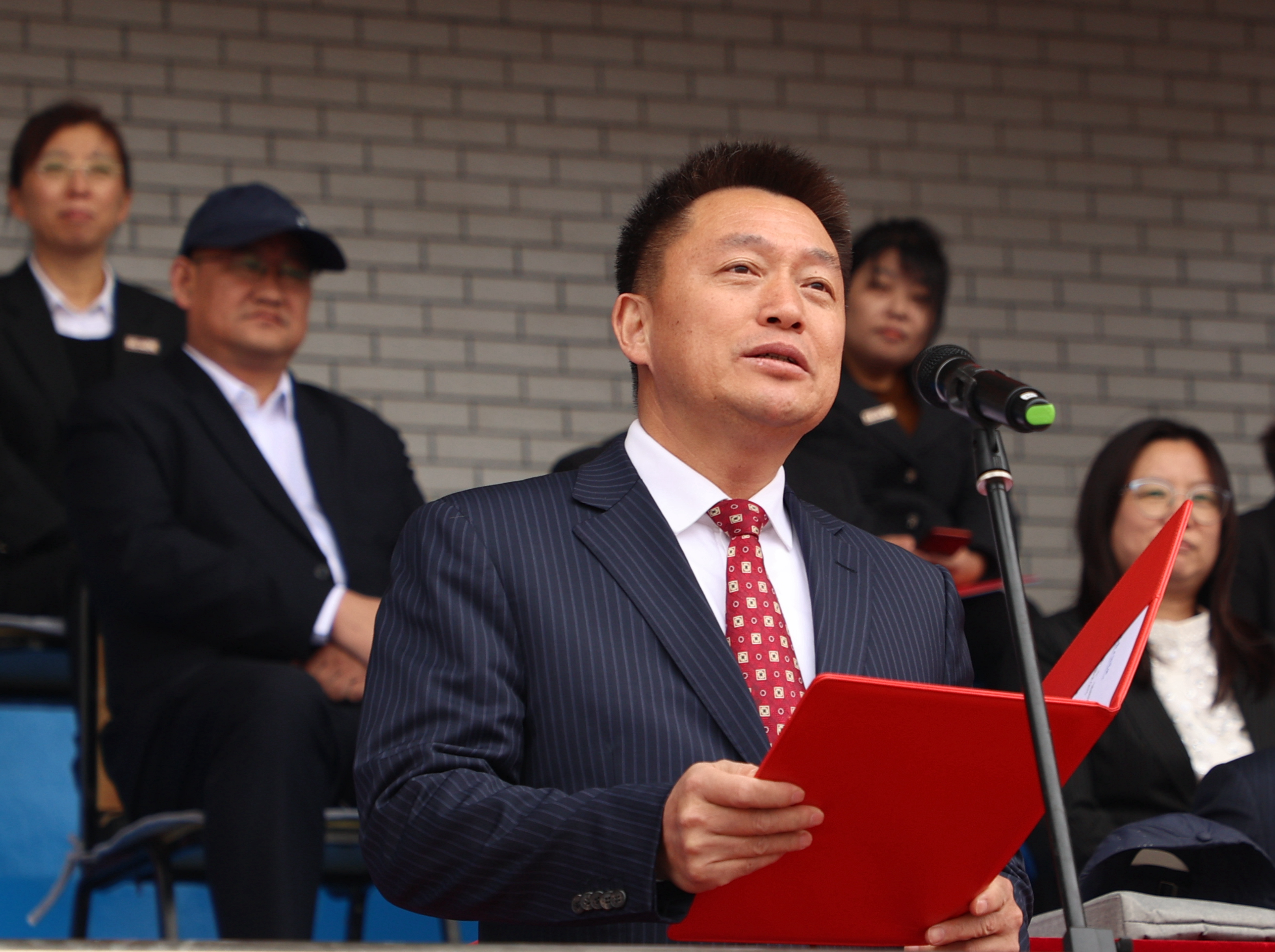 在庄严的奏唱国歌仪式后,校长宋立军宣布长春工程学院第二十一届田径运动会正式开幕。