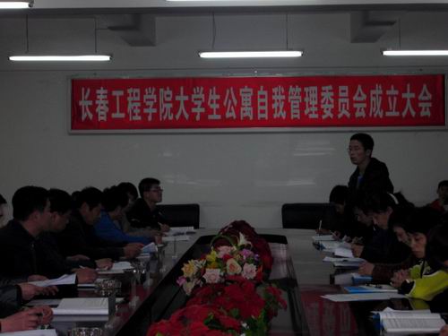 学生工作处副处长李刚对学生公寓自我管理委员会学生干部提出了几点要求,要求学生公寓自我管理委员会深入扎实地做好各项工作,树立工程学子的良好形象。学生公寓自我管理委员会成员要明确职责,尽快进入角色,把各项工作积极地开展起来。