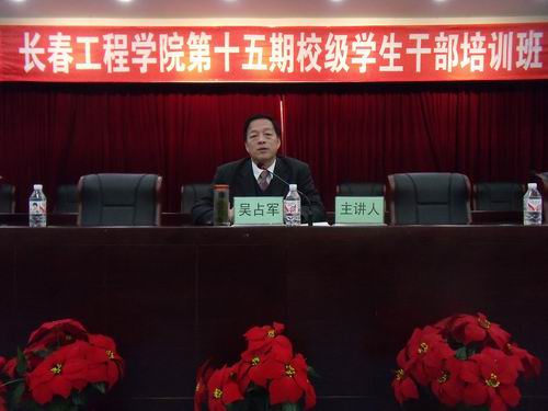 在主会场,吴副书记首先对学生干部在过去一年所做的工作给予了肯定,并着重讲解了如何做一名优秀的学生干部。吴副书记说,学生干部要努力提高个人品行修养,明确政治方向,拥有健康、阳光的心态。在学习方面,要做勤奋学习的典范,积极学习马列理论和科学文化知识,注重向其他同学学习,谦虚谨慎。在日常学习生活中要率先遵守校规校纪,注重小节,严格要求自己,做文明行为的引领者。作为校级学生干部更应该积极参加学校、学院、班级、寝室各项活动,支持身边同学的工作,具有团结协作意识,勤于动脑、善于思考,做一名品德高尚、学习优异、工作出色的学生干部。