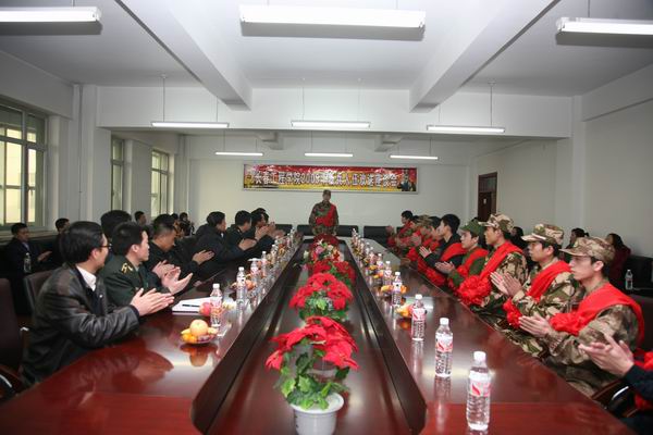 吴占军副书记代表学校向光荣应征入伍的全体新兵表示热烈的祝贺并对他们提出了殷切的希望:一是要牢记“忠诚于党,热爱人民,报效国家,献身使命,崇尚荣誉”的当代革命军人核心价值观;二是要继承革命先辈的光荣传统,苦练杀敌本领,努力提高军事素质;三是既要努力掌握先进的军事思想和高技术装备,又要把所学的专业知识与部队建设相结合,做到“学以致用”,争取早日在部队建功立业,为母校争光。