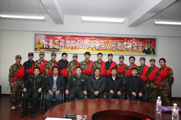 会上,马凯处长对我校2009年征兵工作进行总结并宣读《长春工程学院2009年新兵男兵入伍名单》。勘测0841班姜宏同学代表入伍新兵发言,表示到部队后会严格要求自己,遵守纪律,听从指挥,刻苦学习军事技能,决不辜负学校领导、老师和家长的殷切期望。国防学院教官田野谈了自己的军营生活体会,他说:部队是一个“大学”,大家既要学做事,又要学做人,要有集体荣誉感,大学生士兵在部队定会大有作为。