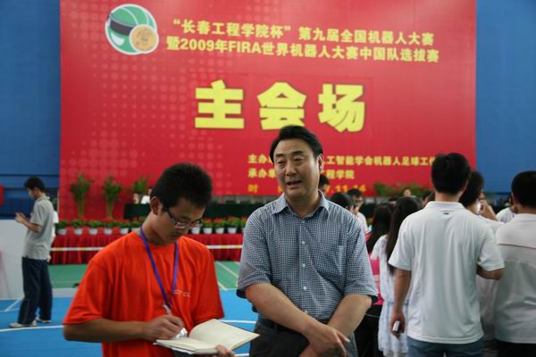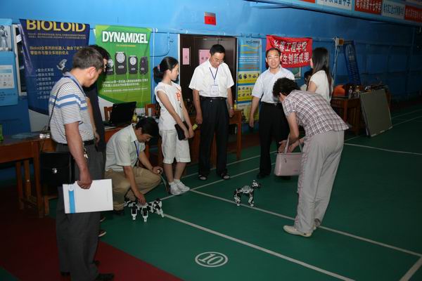 7月12日,国际机器人足球联盟副主席兼国际机器人足球联盟中国分会会长洪炳镕教授和长春工程学院院长韩立强教授、副院长任玉珊教授亲临赛场指导工作,并观看了比赛。洪教授充分肯定了长春工程学院为比赛所做的各项工作,并给予了高度评价。他说这届比赛是规模最大,参赛人数最多,比赛项目最全、水平最高的一届赛会。