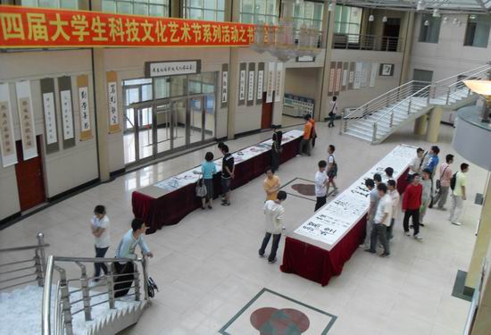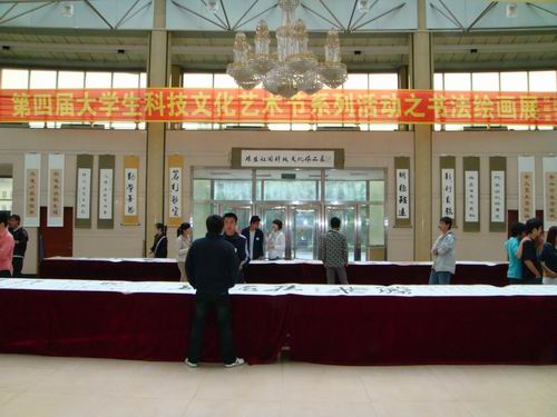 为进一步提高大学生的艺术素养,弘扬传统书画艺术。2009年5月20日由校团委、大学生社团联合会联合长春13所高校共同举办的长春工程学院“第四届大学生科技文化艺术节系列活动之书画作品展”在我校第七教学楼一楼大厅隆重举行。