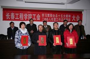 12月13日,校工会在第七教学楼10楼大会议室召开了学习贯彻中国工会十五大精神暨2008年度工作总结表彰大会,党委书记李春生、院长韩立强、副书记吴占军、纪委书记张未知出席会议并为获奖集体颁奖,参加会议的还有各党总支书记、党群部门负责人、各分工会主席、副主席、工会经费审查委员会的有关同志等。工会主席王英石作了中国工会十五大精神辅导培训,工会副主席张蕴娣对2008年工会工作及财务情况作了总结汇报,工会专职委员张爽主持会议。电气与信息学院分工会等8个单位获得“先进分工会”称号,能源动力学院分工会等5个单位获得“先进职工之家”称号,张祥彦等158名同志获得“工会活动积极分子”称号。