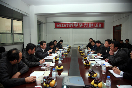 李书记最后汇报说,在今后学习实践科学发展观活动中,学校党委将在深刻学习和理解科学发展观内涵上下功夫,认真解决八大突出问题,进一步落实“十一五”规划,全面推进科研和学科建设,解放思想,拓宽办学思路,实施人才强校战略,建设高素质教师队伍,推进学校各项事业又好又快发展。