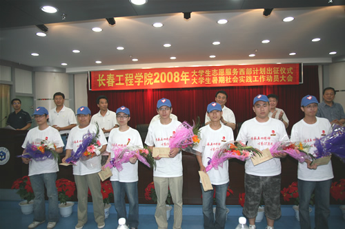 校团委举行长春工程学院2008年大学生志愿服务西部计划出征仪式暨大学生社会实践工作动员大会