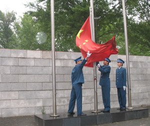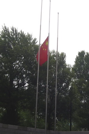 我校也于今早(5月19日)六点二十八分,由水利与环境学院、勘查与测绘学院国旗班在东、西校区同时举行降半旗仪式,以表达我校师生对遇难者们的哀悼。