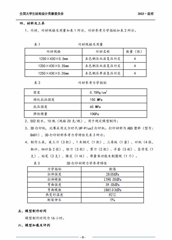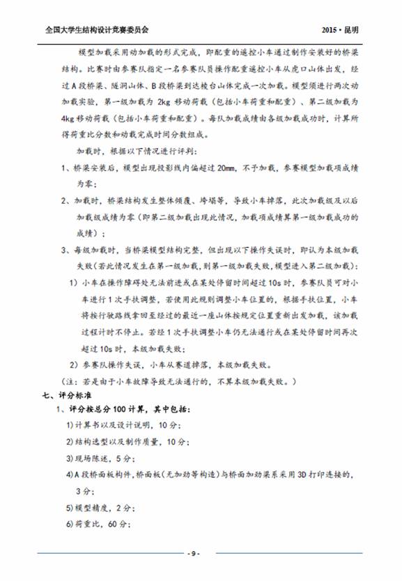 竞赛题目:采用第九届全国大学生结构设计竞赛赛题。