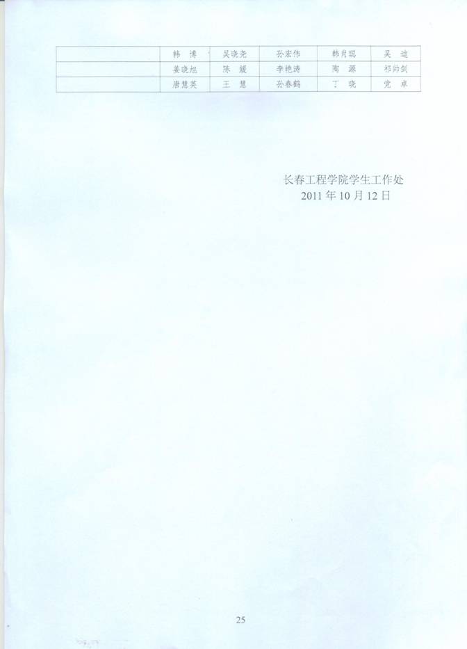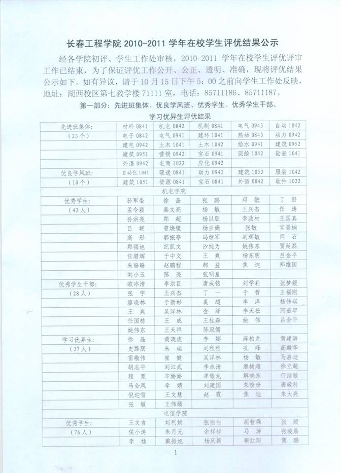 长春工程学院2010-2011学年在校学生评优结果公示