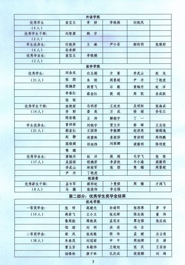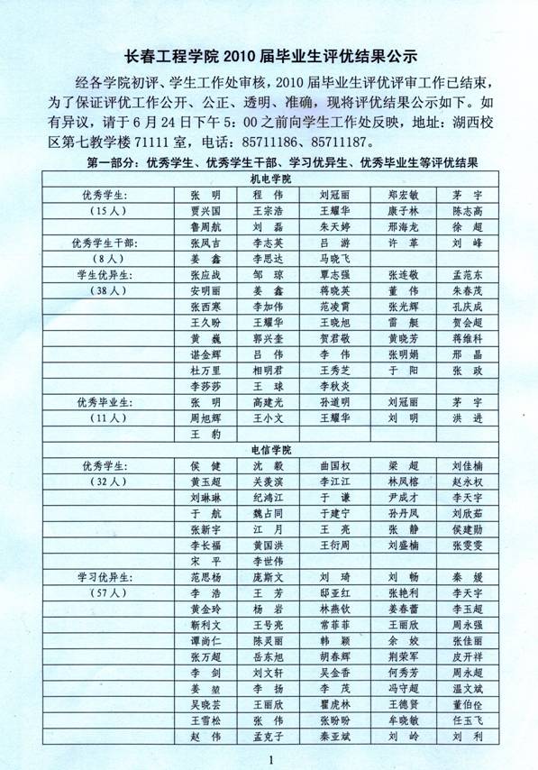 长春工程学院2010届毕业生评优结果公示